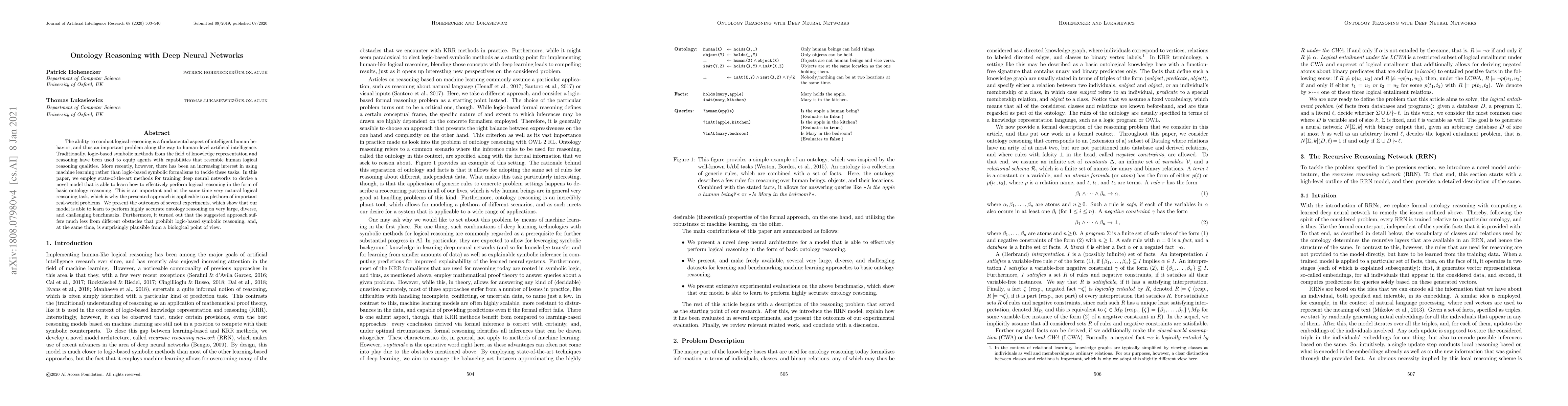 The ability to conduct logical reasoning is a fundamental aspect of intelligent human behavior, and thus an important problem along the way to human-level artificial intelligence. Traditionally, logic-based symbolic methods from the field of knowledge representation and reasoning have been used to equip agents with capabilities that resemble human logical reasoning qualities. More recently, however, there has been an increasing interest in using machine learning rather than logic-based symbolic formalisms to tackle these tasks. In this paper, we employ state-of-the-art methods for training deep neural networks to devise a novel model that is able to learn how to effectively perform logical reasoning in the form of basic ontology reasoning. This is an important and at the same time very natural logical reasoning task, which is why the presented approach is applicable to a plethora of important real-world problems. We present the outcomes of several experiments, which show that our model is able to learn to perform highly accurate ontology reasoning on very large, diverse, and challenging benchmarks. Furthermore, it turned out that the suggested approach suffers much less from different obstacles that prohibit logic-based symbolic reasoning, and, at the same time, is surprisingly plausible from a biological point of view.