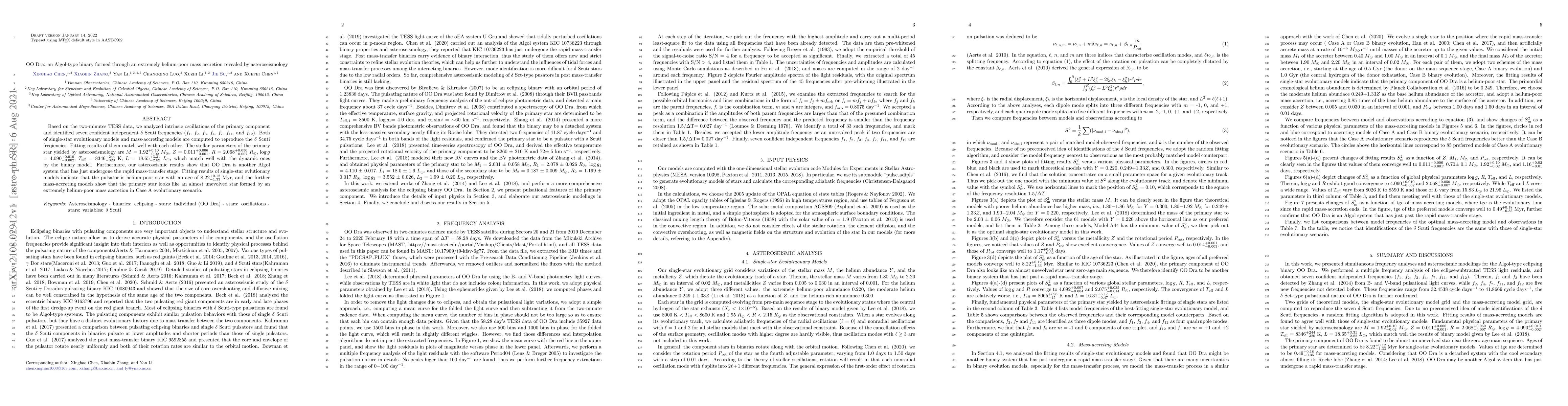 This paper identifies OO Dra as an Algol-type binary system formed through an extremely helium-poor mass accretion, revealed by asteroseismology. The analysis of TESS data detected seven $\delta$ Scuti frequencies, confirming the primary star's parameters and indicating a helium-poor, rapidly evolving star with an age of 8.22 Myr.