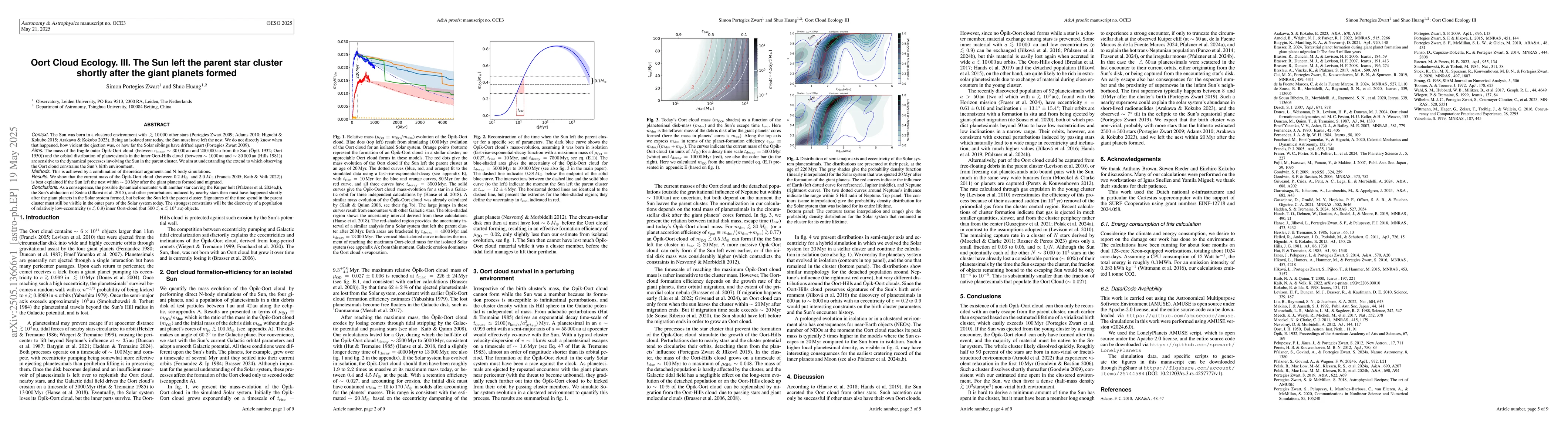 The Sun left its parent star cluster within 20 million years of giant planet formation, suggesting a violent ejection process. Observing the Oort cloud can constrain this birth environment, offering clues to the Sun's past interactions with other stars.