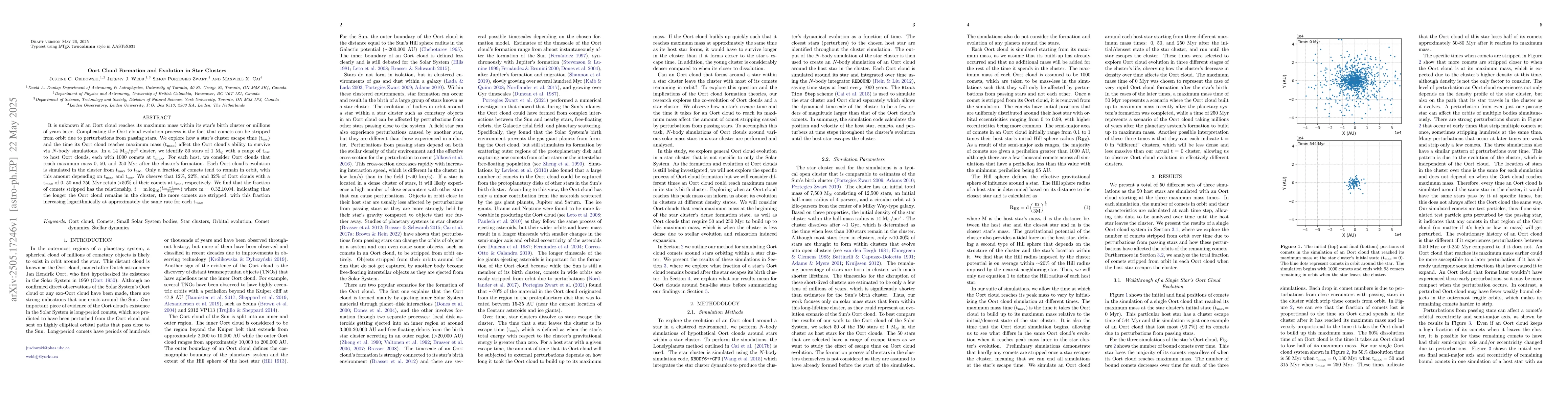 Researchers studied how Oort clouds in star clusters evolve and survive over time, finding that longer cluster lifetimes lead to more comets being stripped from orbit, with the rate of stripping increasing logarithmically.