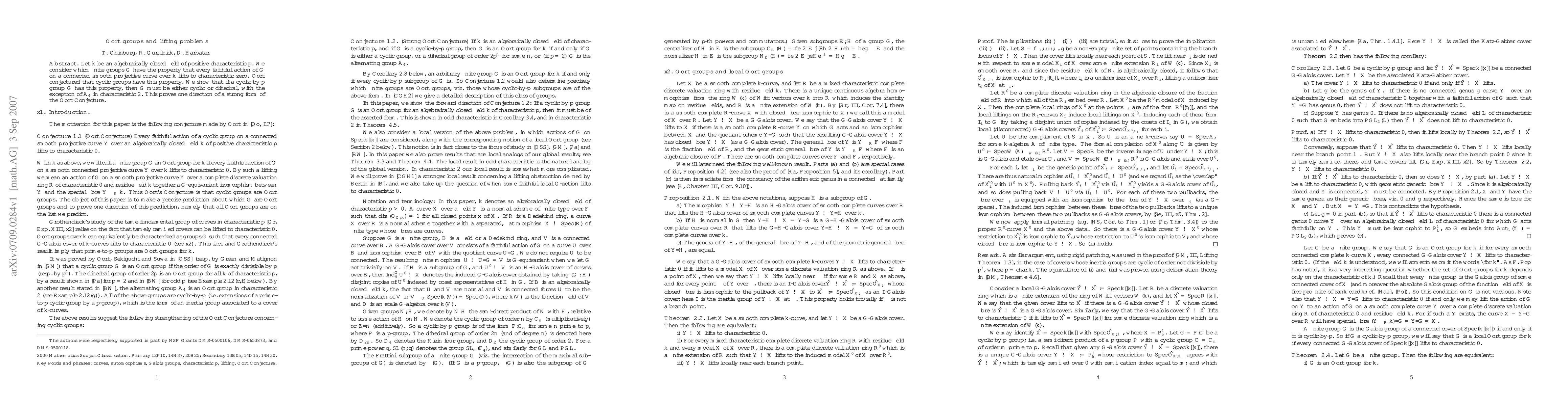 The paper investigates Oort groups, focusing on cyclic-by-p groups. It proves that such groups, aside from A_4 in characteristic 2, have the lifting property to characteristic zero, supporting a direction of the Oort Conjecture.