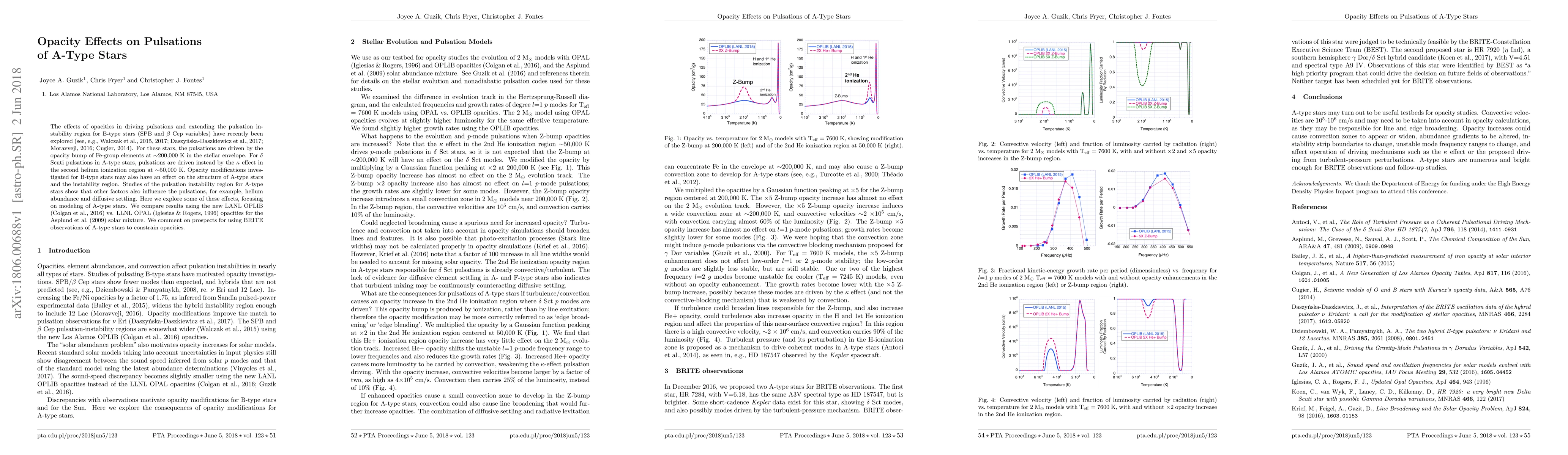 The effects of opacities in driving pulsations and extending the pulsation instability region for B-type stars (SPB and $\beta$ Cep variables) have recently been explored by, e.g., Walczak et al. 2015, 2017, Daszynska-Daszkiewicz et al. 2017; Moravveji 2016, and Cugier 2014. For these stars, the pulsations are driven by the opacity bump of Fe-group elements at around 200,000 K in the stellar envelope. For $\delta$ Scuti pulsations in A-type stars, pulsations are driven instead by the $\kappa$ effect in the second helium ionization region at around 50,000 K. Opacity modifications investigated for B-type stars may also have an effect on the structure of A-type stars and the instability region. Studies of the pulsation instability region for A-type stars show that other factors also influence the pulsations, for example, helium abundance and diffusive settling. Here we explore some of these effects, focusing on modeling of A-type stars. We compare results using the new LANL OPLIB vs. LLNL OPAL opacities for the AGSS09 solar abundance mixture. We comment on prospects for using BRITE observations of A-type stars to constrain opacities.