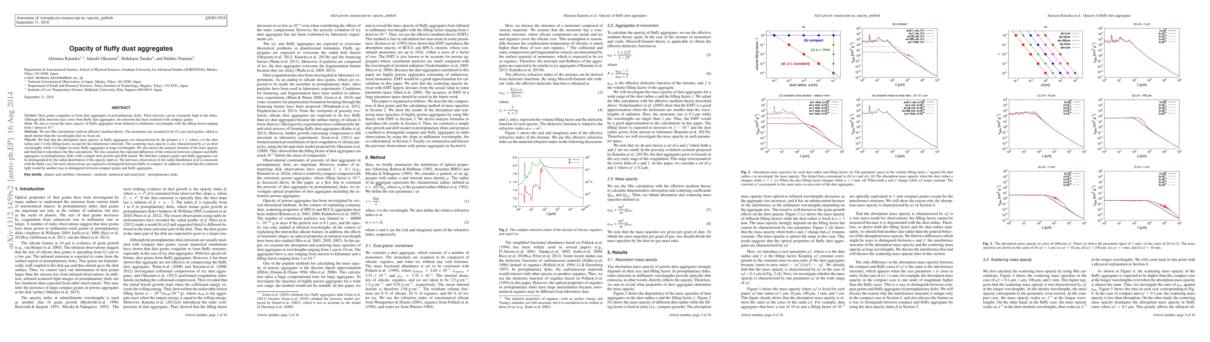 This paper investigates the mass opacity of fluffy dust aggregates in protoplanetary disks, finding that it is characterized by the product of dust radius and filling factor. The study reveals that fluffy aggregates can be distinguished from compact grains by analyzing the radial distribution of the opacity index and scattered light.