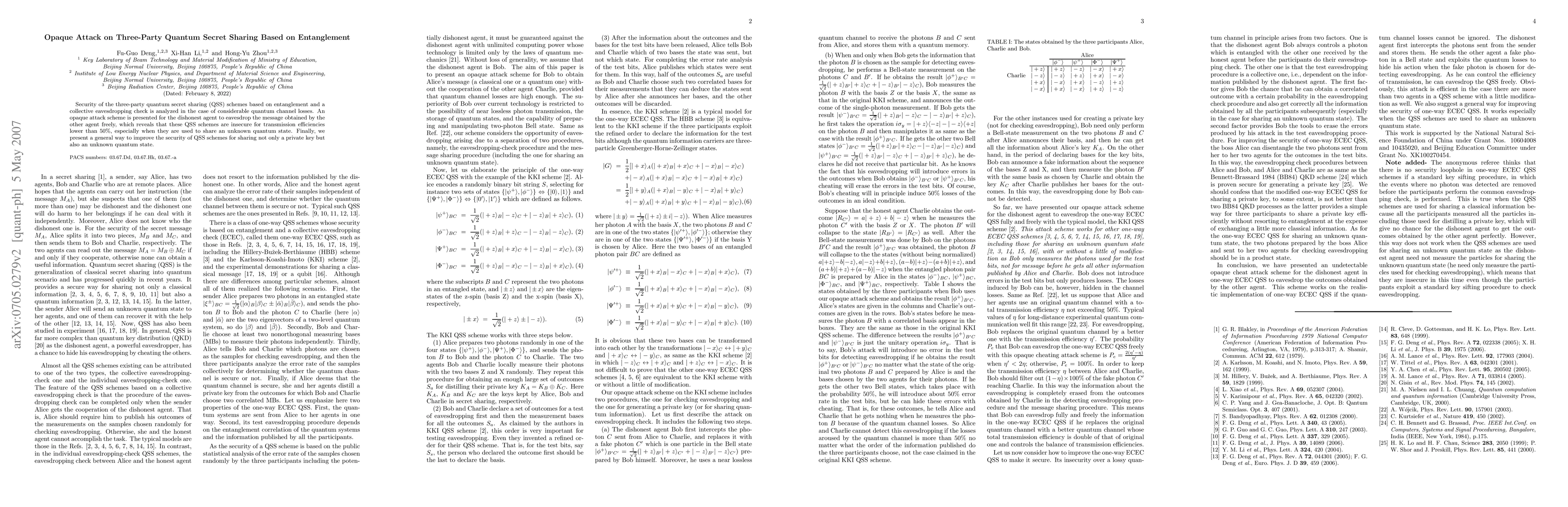 This paper presents an opaque attack on three-party quantum secret sharing schemes based on entanglement, revealing their insecurity under significant quantum channel losses. It proposes a general method to enhance security for sharing both private keys and unknown quantum states.