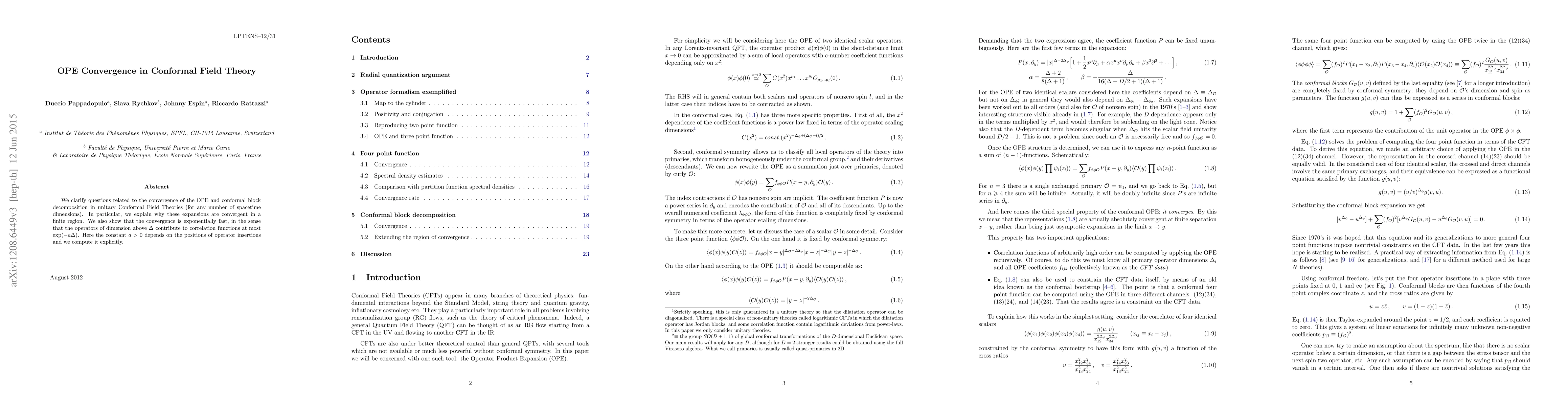 The paper clarifies questions related to the convergence of the Operator Product Expansion (OPE) and conformal block decomposition in unitary Conformal Field Theories (CFTs) for any spacetime dimensions, explaining the finite region of convergence and demonstrating exponentially fast convergence with contributions from operators above a certain dimension Δ suppressed by exp(-aΔ).