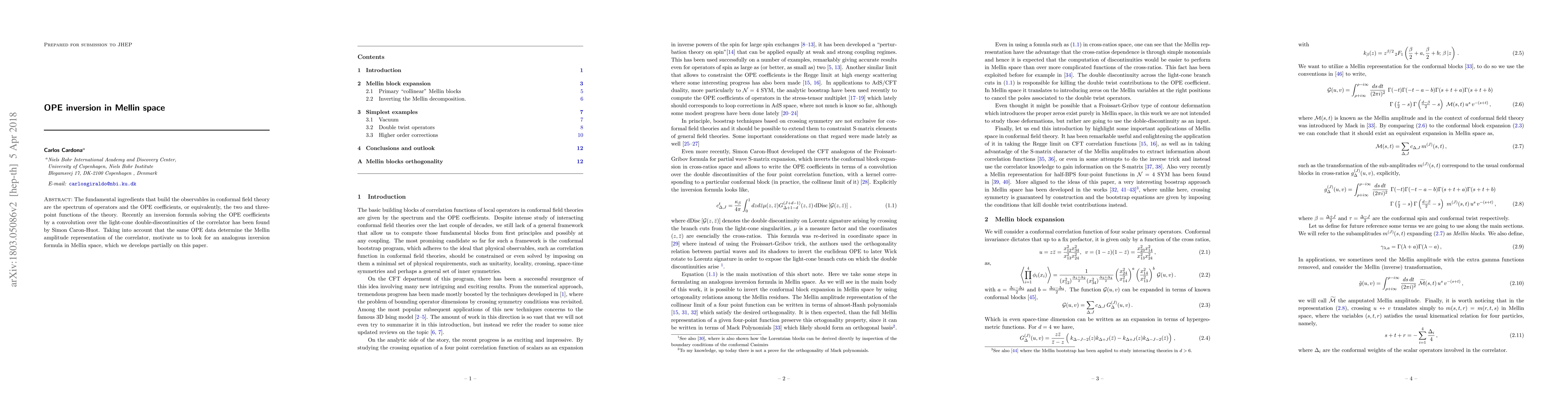 This paper explores the development of an inversion formula in Mellin space to determine OPE coefficients from the light-cone double-discontinuities of correlators, extending the recent findings by Simon Caron-Huot on OPE inversion in conformal field theory.