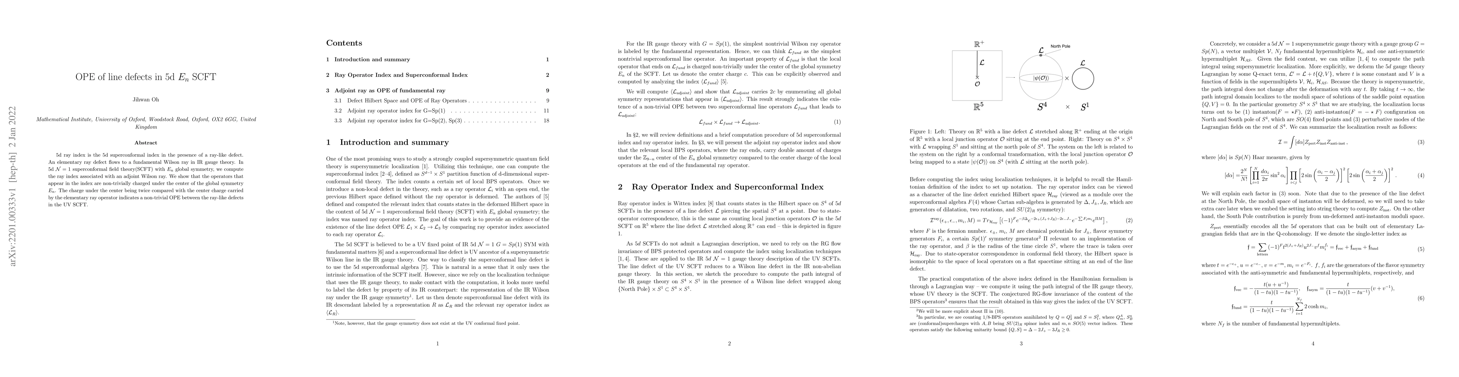 This paper computes the ray index in 5d $\mathcal{N}=1$ $\mathrm{SCFT}$ with $E_n$ symmetry, revealing operators in the index that carry twice the center charge of elementary ray operators, indicating a non-trivial operator product expansion (OPE) between ray-like defects.