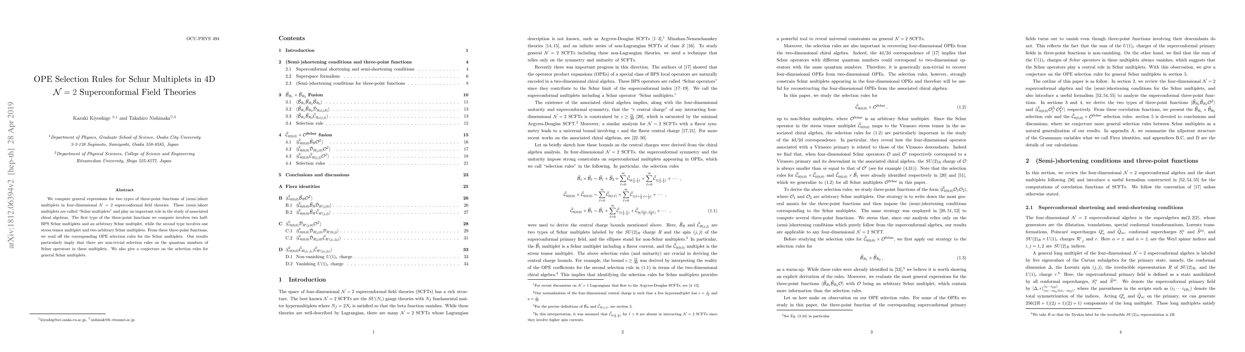 This paper derives general expressions for three-point functions of Schur multiplets in 4D $\mathcal{N}=2$ superconformal field theories, identifying non-trivial selection rules on the quantum numbers of Schur operators. The authors also propose a conjecture for the selection rules for general Schur multiplets.