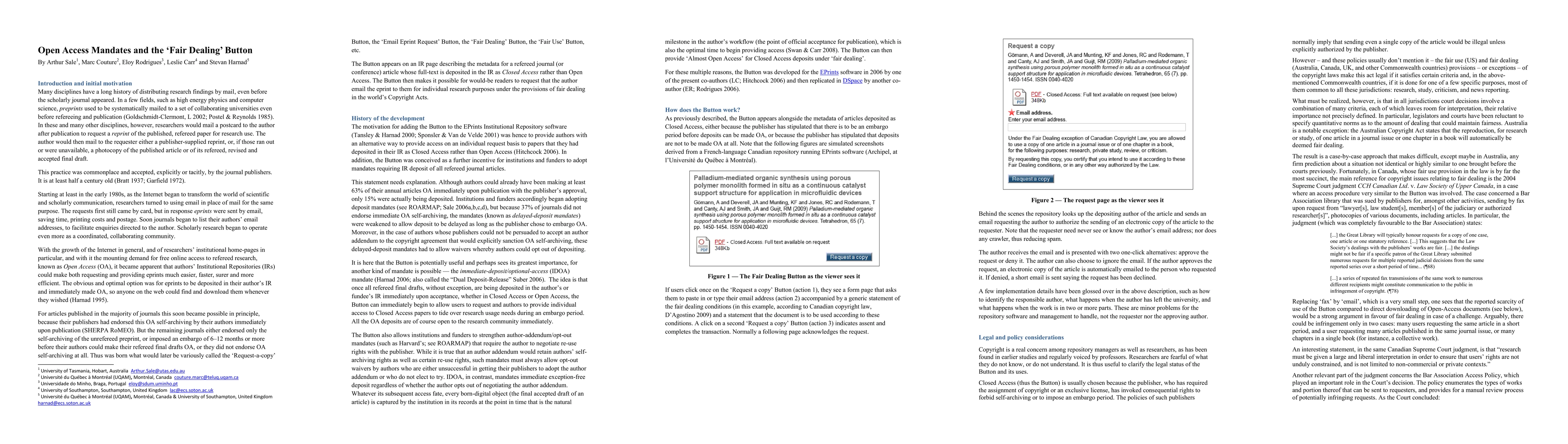 Researchers developed the 'Fair Dealing Button' to facilitate immediate Open Access for authors with partially open access deposits, accelerating the transition to universal Open Access.