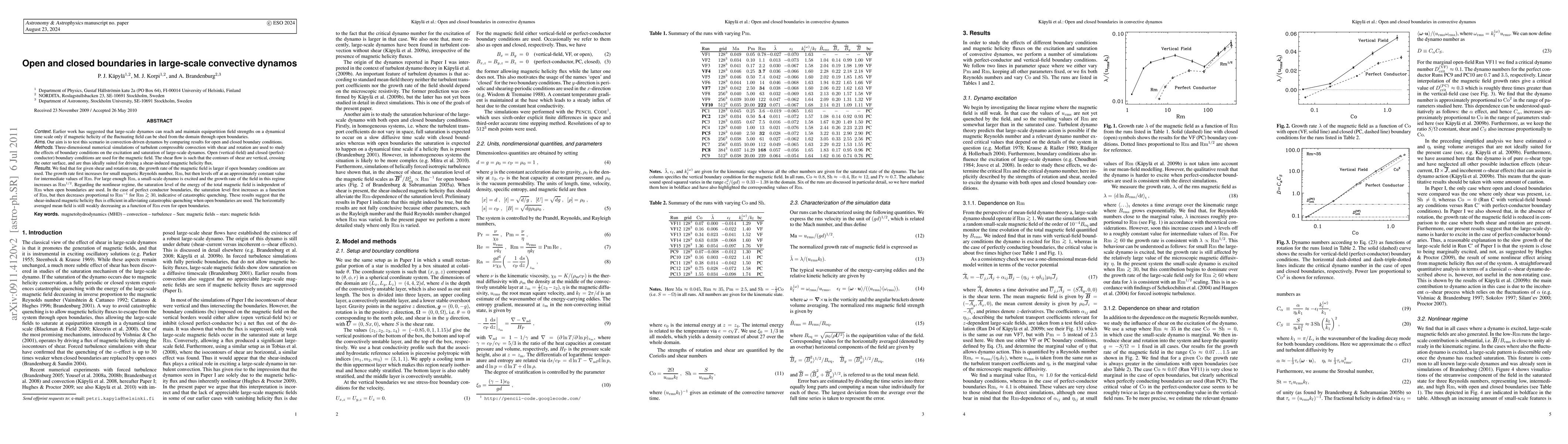 This paper explores the dynamics of large-scale convective dynamos under open and closed boundary conditions using numerical simulations. It finds that open boundaries enhance the growth rate of the magnetic field and prevent catastrophic quenching, while closed boundaries lead to quenching effects at higher magnetic Reynolds numbers.