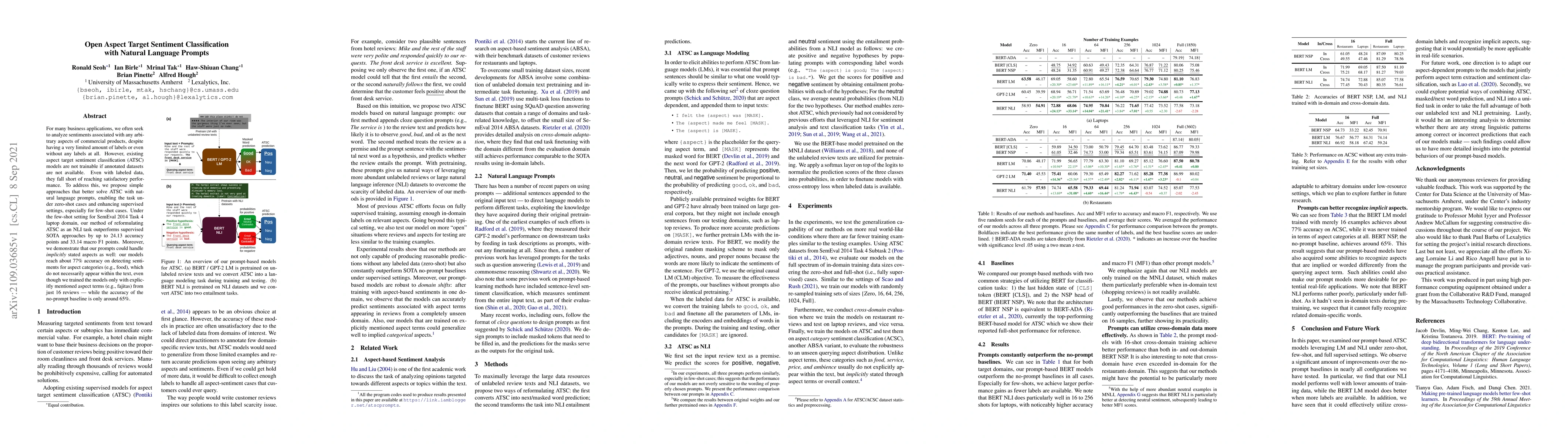 For many business applications, we often seek to analyze sentiments associated with any arbitrary aspects of commercial products, despite having a very limited amount of labels or even without any labels at all. However, existing aspect target sentiment classification (ATSC) models are not trainable if annotated datasets are not available. Even with labeled data, they fall short of reaching satisfactory performance. To address this, we propose simple approaches that better solve ATSC with natural language prompts, enabling the task under zero-shot cases and enhancing supervised settings, especially for few-shot cases. Under the few-shot setting for SemEval 2014 Task 4 laptop domain, our method of reformulating ATSC as an NLI task outperforms supervised SOTA approaches by up to 24.13 accuracy points and 33.14 macro F1 points. Moreover, we demonstrate that our prompts could handle implicitly stated aspects as well: our models reach about 77% accuracy on detecting sentiments for aspect categories (e.g., food), which do not necessarily appear within the text, even though we trained the models only with explicitly mentioned aspect terms (e.g., fajitas) from just 16 reviews - while the accuracy of the no-prompt baseline is only around 65%.