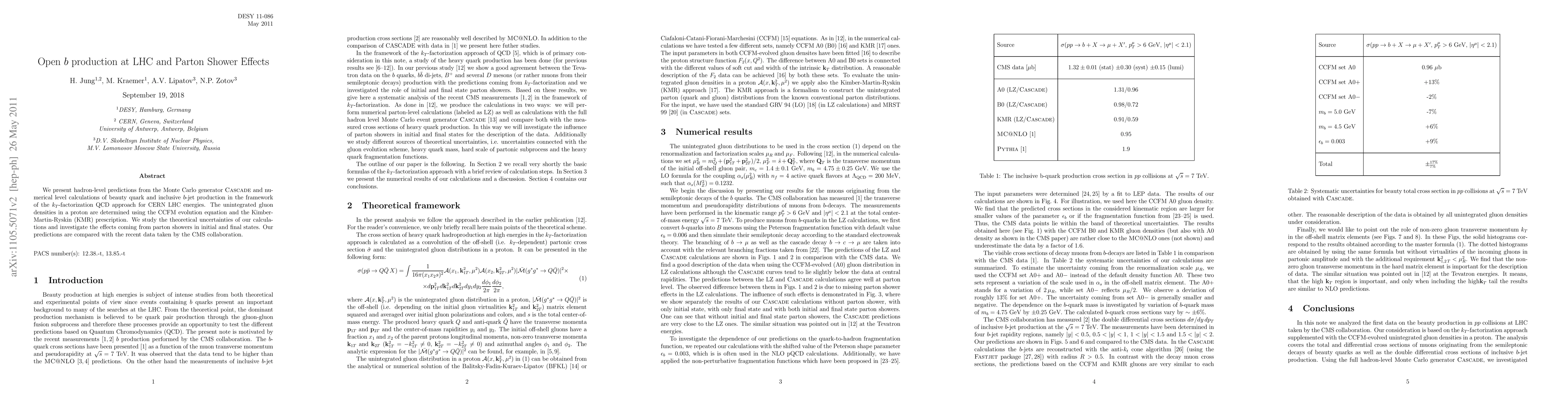 We present hadron-level predictions from the Monte Carlo generator Cascade and numerical level calculations of beauty quark and inclusive b-jet production in the framework of the kT -factorization QCD approach for CERN LHC energies. The unintegrated gluon densities in a proton are determined using the CCFM evolution equation and the Kimber- Martin-Ryskin (KMR) prescription. We study the theoretical uncertainties of our calcula- tions and investigate the effects coming from parton showers in initial and final states. Our predictions are compared with the recent data taken by the CMS collaboration.