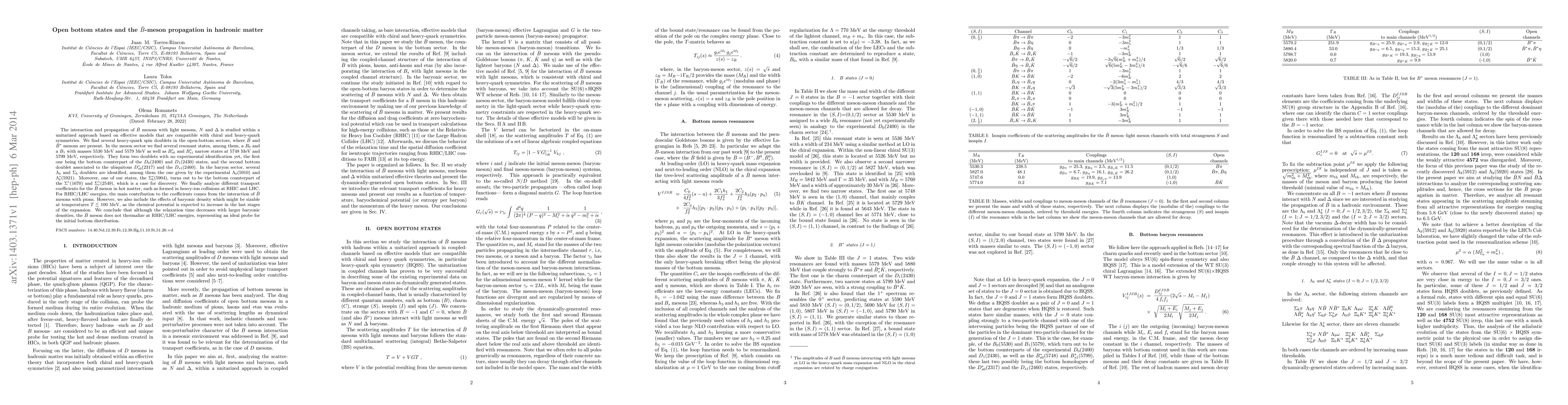The interaction and propagation of anti-B mesons with light mesons, N and Delta baryons is studied within a unitarized approach based on effective models that are compatible with chiral and heavy-quark symmetries. We find several heavy-quark spin doublets in the open-bottom sectors, where anti-B and anti-B* mesons are present. In the meson sector we find several resonant states, among them, a B0 and a B1 with masses 5530 MeV and 5579 MeV as well as Bs0* and Bs1* narrow states at 5748 MeV and 5799 MeV, respectively. They form two doublets with no experimental identification yet, the first one being the bottom counterpart of the D0(2400) and D1(2430) states, and the second bottom doublet associated to the ubiquitous Ds0* (2317) and the Ds1 (2460). In the baryon sector, several Lambda_b and Sigma_b doublets are identified, among them the one given by the experimental Lambda_b(5910) and Lambda*_b(5921). Moreover, one of our states, the Sigma_b*(5904), turns out to be the bottom counterpart of the Sigma*(1670) and Sigma_c*(2549), which is a case for discovery. We finally analyze different transport coefficients for the anti-B meson in hot matter, such as formed in heavy-ion collisions at RHIC and LHC. For RHIC/LHC energies, the main contribution to the coefficients comes from the interaction of anti-B mesons with pions. However, we also include the effects of baryonic density which might be sizable at temperatures T < 100 MeV, as the chemical potential is expected to increase in the last stages of the expansion. We conclude that although the relaxation time decreases with larger baryonic densities, the anti-B meson does not thermalize at RHIC/LHC energies, representing an ideal probe for the initial bottom distribution.