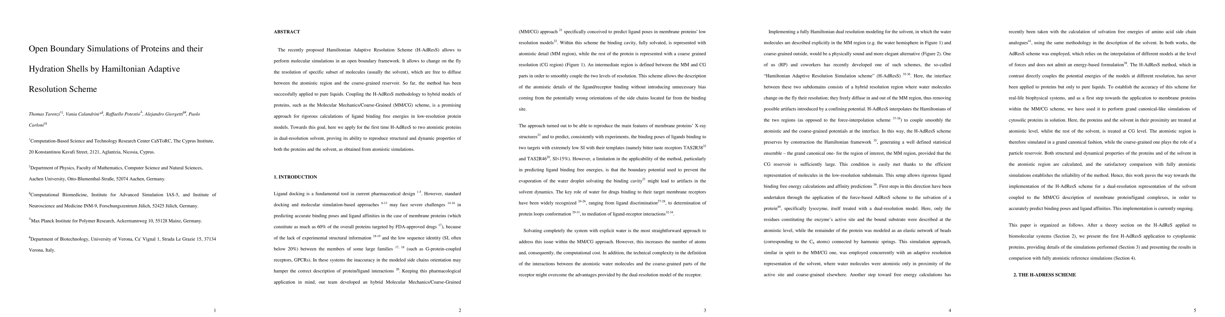 This paper introduces the Hamiltonian Adaptive Resolution Scheme (H-AdResS) for simulating proteins and their hydration shells, demonstrating its successful application to two atomistic proteins. H-AdResS, which changes resolution on-the-fly for solvent molecules, accurately reproduces structural and dynamic properties of proteins and solvent as observed in atomistic simulations.