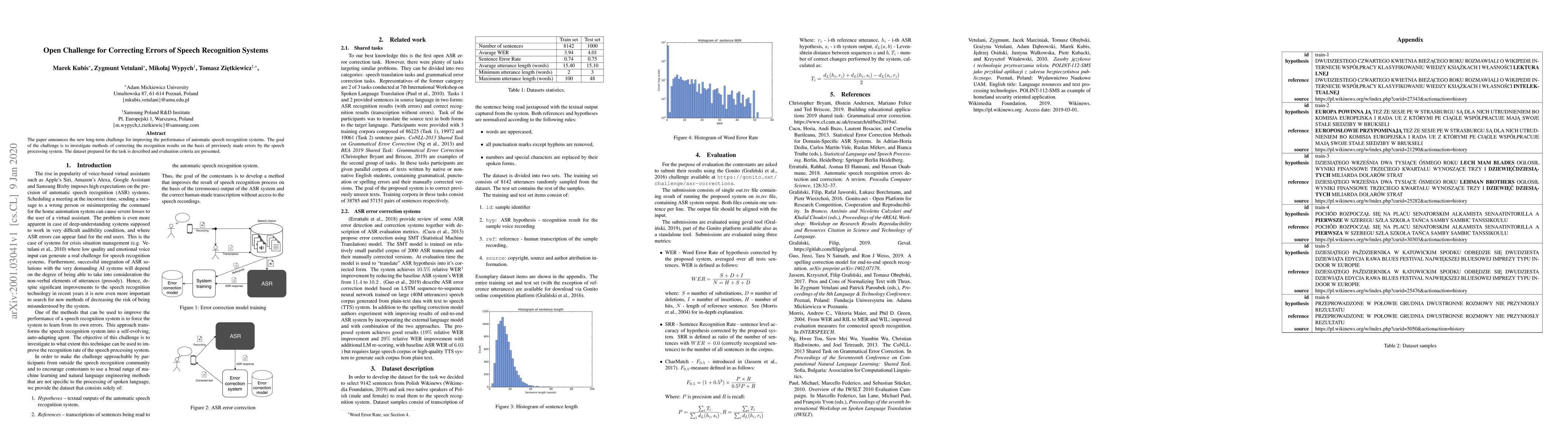 The paper announces the new long-term challenge for improving the performance of automatic speech recognition systems. The goal of the challenge is to investigate methods of correcting the recognition results on the basis of previously made errors by the speech processing system. The dataset prepared for the task is described and evaluation criteria are presented.