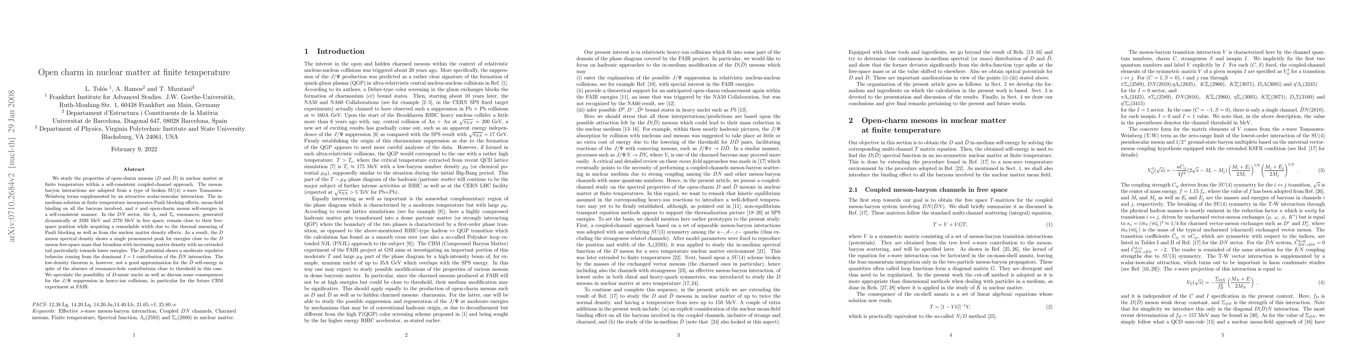 This paper investigates the behavior of open-charm mesons ($D$ and $\bar {D}$) in nuclear matter at finite temperature using a self-consistent coupled-channel approach. The study reveals that while $D$ mesons show a broadening peak near their free-space mass, $\bar D$ mesons exhibit a moderate repulsive potential, with implications for $D$-mesic nuclei and $J/\Psi$ suppression in heavy-ion collisions.