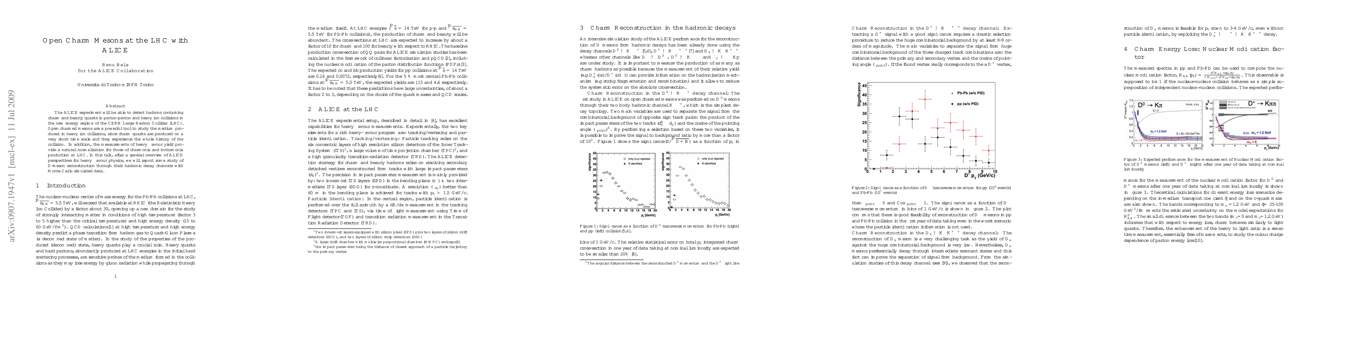 The ALICE experiment at the LHC aims to detect open charm mesons in proton-proton and heavy ion collisions to study the medium produced in heavy ion interactions. Initial studies focus on D-meson reconstruction via hadronic decay channels using Monte Carlo simulations.