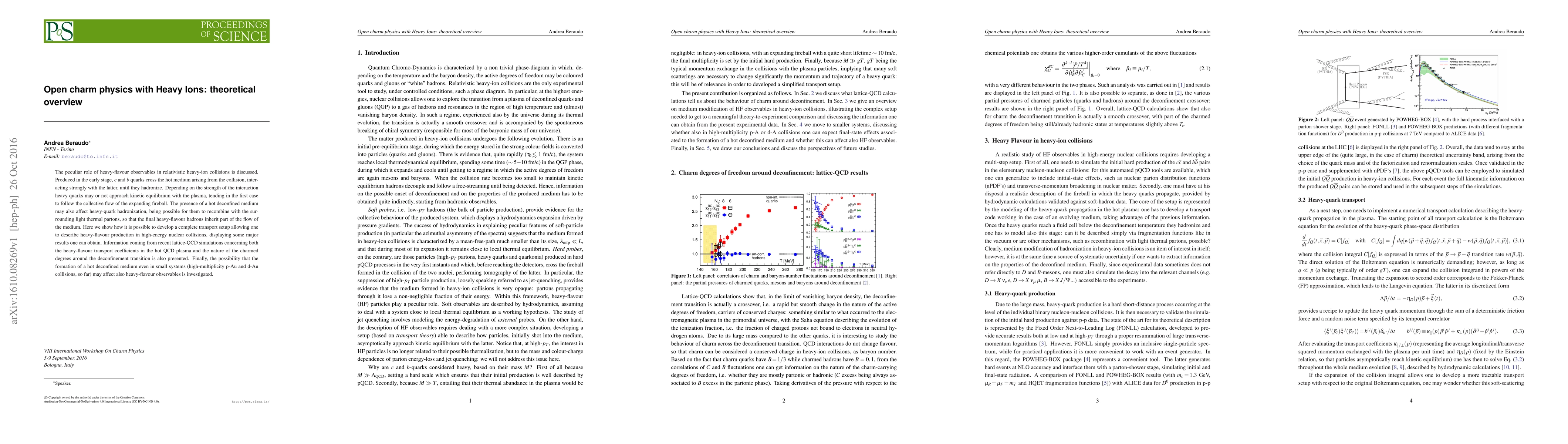 The peculiar role of heavy-flavour observables in relativistic heavy-ion collisions is discussed. Produced in the early stage, $c$ and $b$ quarks cross the hot medium arising from the collision, interacting strongly with the latter, until they hadronize. Depending on the strength of the interaction heavy quarks may or not approach kinetic equilibrium with the plasma, tending in the first case to follow the collective flow of the expanding fireball. The presence of a hot deconfined medium may also affect heavy-quark hadronization, being possible for them to recombine with the surrounding light thermal partons, so that the final heavy-flavour hadrons inherit part of the flow of the medium. Here we show how it is possible to develop a complete transport setup allowing one to describe heavy-flavour production in high-energy nuclear collisions, displaying some major results one can obtain. Information coming from recent lattice-QCD simulations concerning both the heavy-flavour transport coefficients in the hot QCD plasma and the nature of the charmed degrees around the deconfinement transition is also presented. Finally, the possibility that the formation of a hot deconfined medium even in small systems (high-multiplicity p-Au and d-Au collisions, so far) may affect also heavy-flavour observables is investigated.