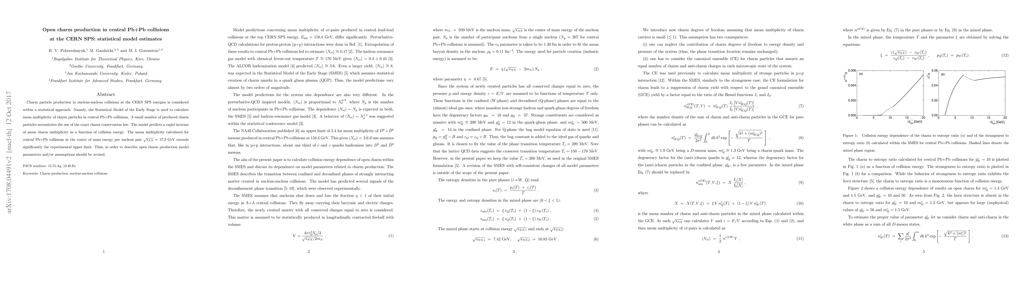 This paper uses the Statistical Model of the Early Stage to estimate charm particle production in central Pb+Pb collisions at CERN SPS energies. The model predicts a significant increase in mean charm multiplicity with energy, but results for $\sqrt{s_{NN}}=17.3$ GeV exceed experimental limits, suggesting a need for model parameter revisions.