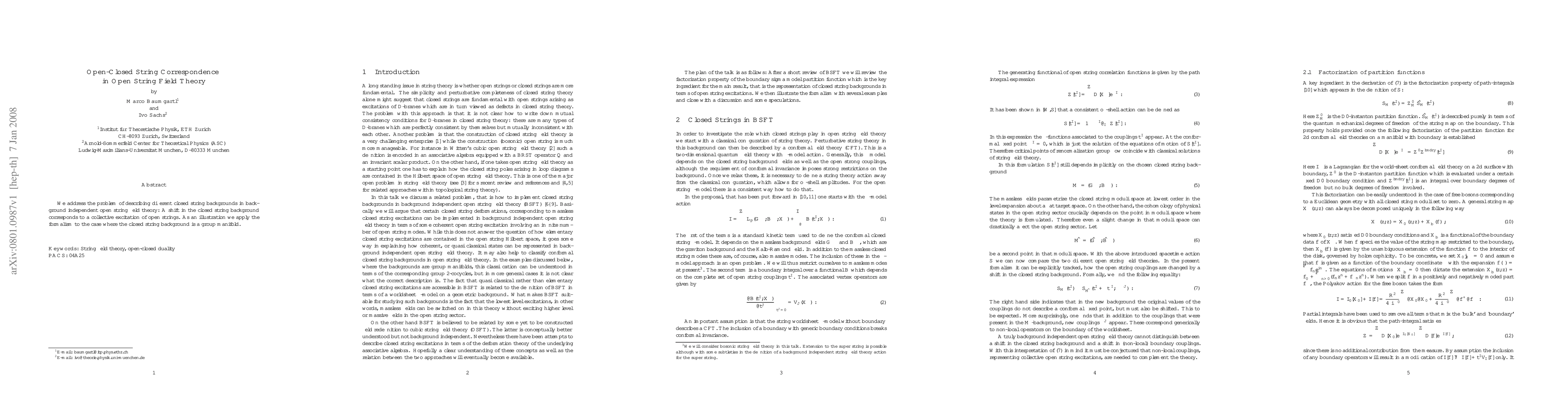 We address the problem of describing different closed string backgrounds in background independent open string field theory: A shift in the closed string background corresponds to a collective excitation of open strings. As an illustration we apply the formalism to the case where the closed string background is a group manifold.