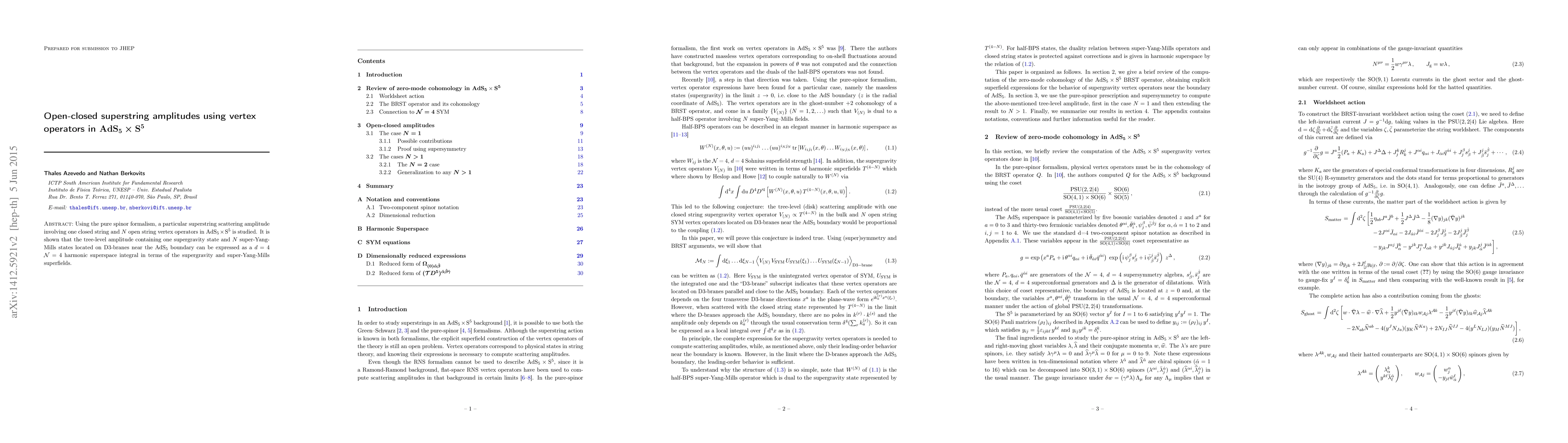 Title: Open-closed superstring amplitudes using vertex operators in $\mathrm{AdS}_5 \times \mathrm{S}^5$ Summary: This paper employs the pure spinor formalism to express a specific open-closed superstring amplitude in $\mathrm{AdS}_5 \times \mathrm{S}^5$ as a harmonic superspace integral, relating tree-level supergravity and super-Yang-Mills states near the boundary.