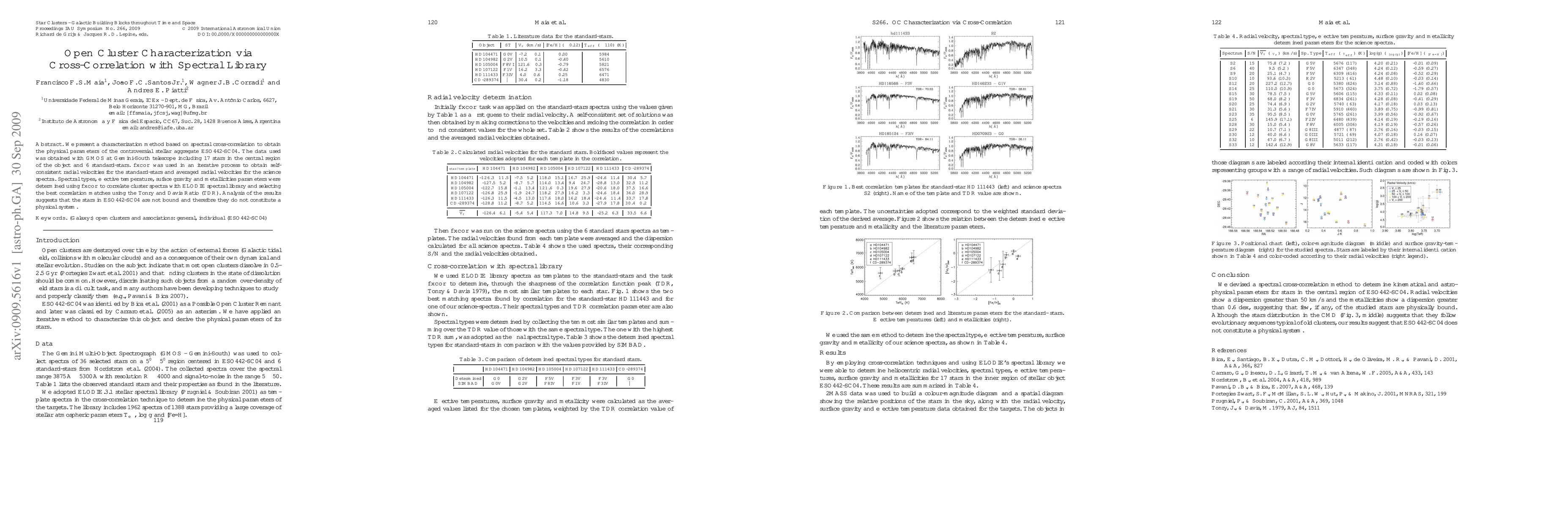 We present a characterization method based on spectral cross-correlation to obtain the physical parameters of the controversial stellar aggregate ESO442-SC04. The data used was obtained with GMOS at Gemini-South telescope including 17 stars in the central region of the ob ject and 6 standard-stars. FXCOR was used in an iterative process to obtain self-consistent radial velocities for the standard-stars and averaged radial velocities for the science spectra. Spectral types, effective temperature, suface gravity and metallicities parameters were determined using FXCOR to correlate cluster spectra with ELODIE spectral library and selecting the best correlation matches using the Tonry and Davis Ratio (TDR). Analysis of the results suggests that the stars in ESO442-SC04 are not bound and therefore they do not constitute a physical system.