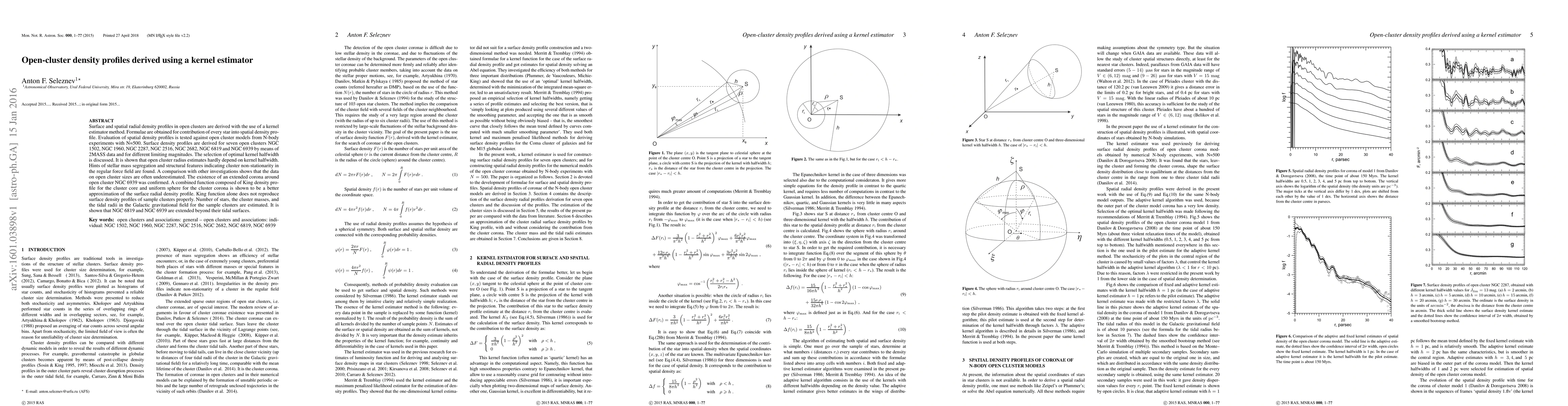 This study uses a kernel estimator method to derive surface and spatial radial density profiles of open clusters, revealing hints of stellar mass segregation and structural features indicating non-stationarity, as well as underestimated cluster sizes.