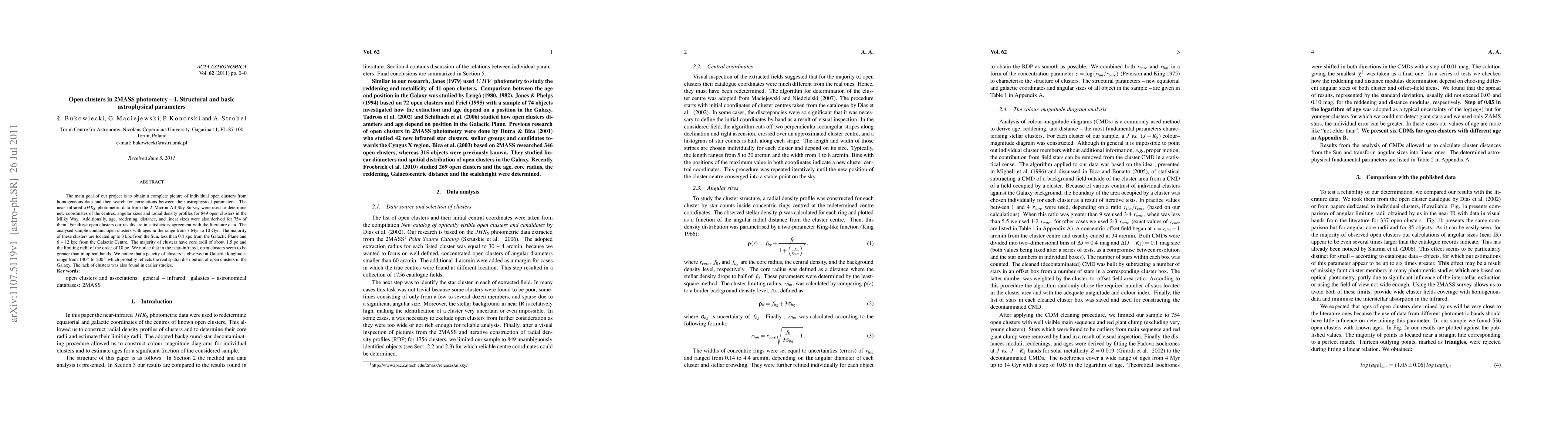 This study uses 2MASS photometry data to analyze open clusters in the Milky Way, determining their structural and astrophysical parameters such as age, distance, and size, with a focus on correlations between these parameters.