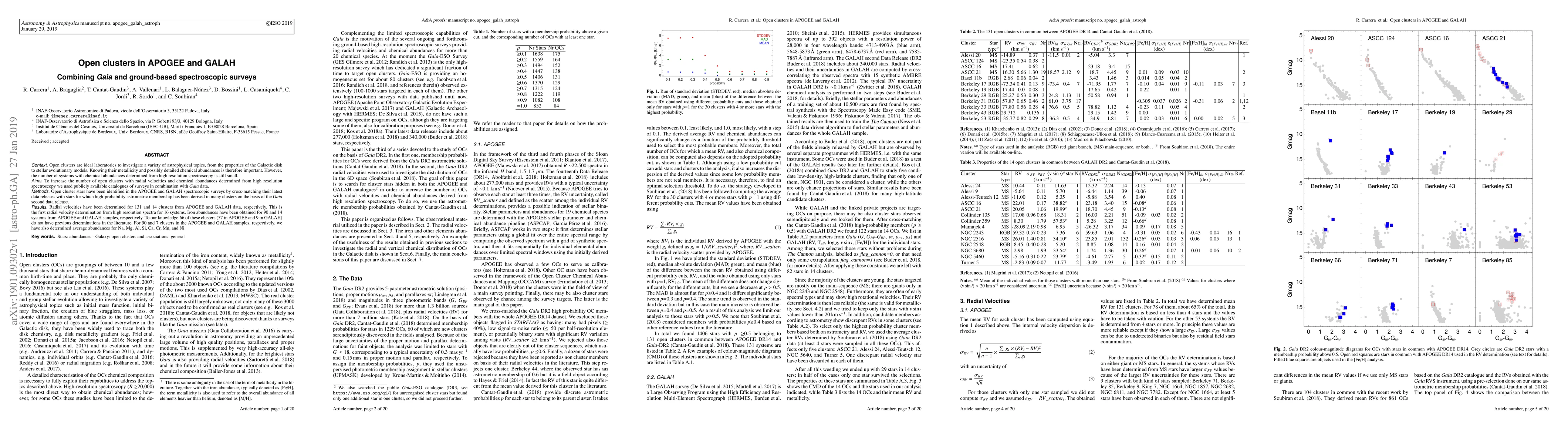 This study combines Gaia data with APOGEE and GALAH spectroscopic surveys to identify open cluster stars and determine their radial velocities and chemical abundances, significantly expanding the number of clusters with such detailed information. The results include radial velocity and iron abundance determinations for 131 and 14 clusters, respectively, with many previously unreported values.