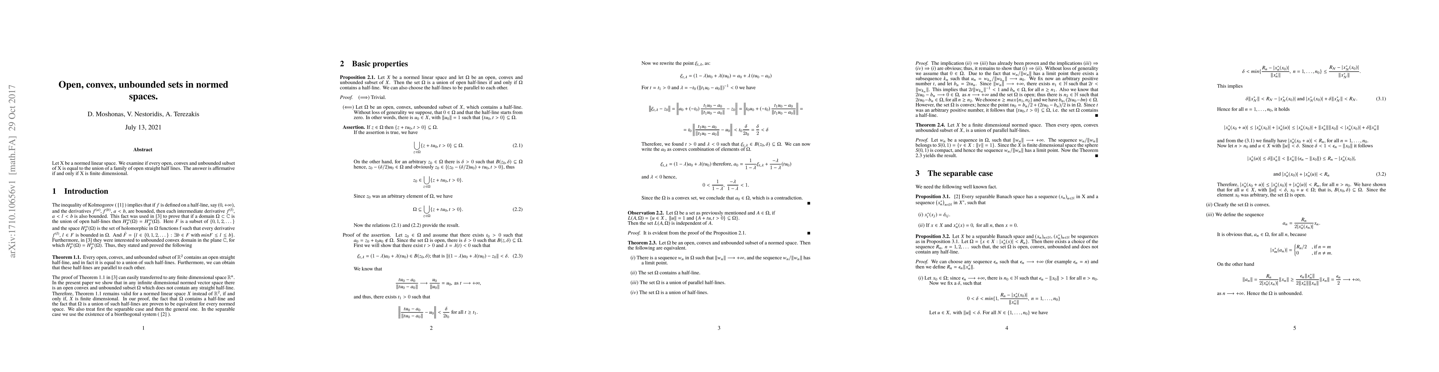 Summary: This paper explores whether every open, convex, and unbounded subset in a normed linear space X can be represented as a union of open straight half lines. It concludes that this property holds if and only if X is finite dimensional.
