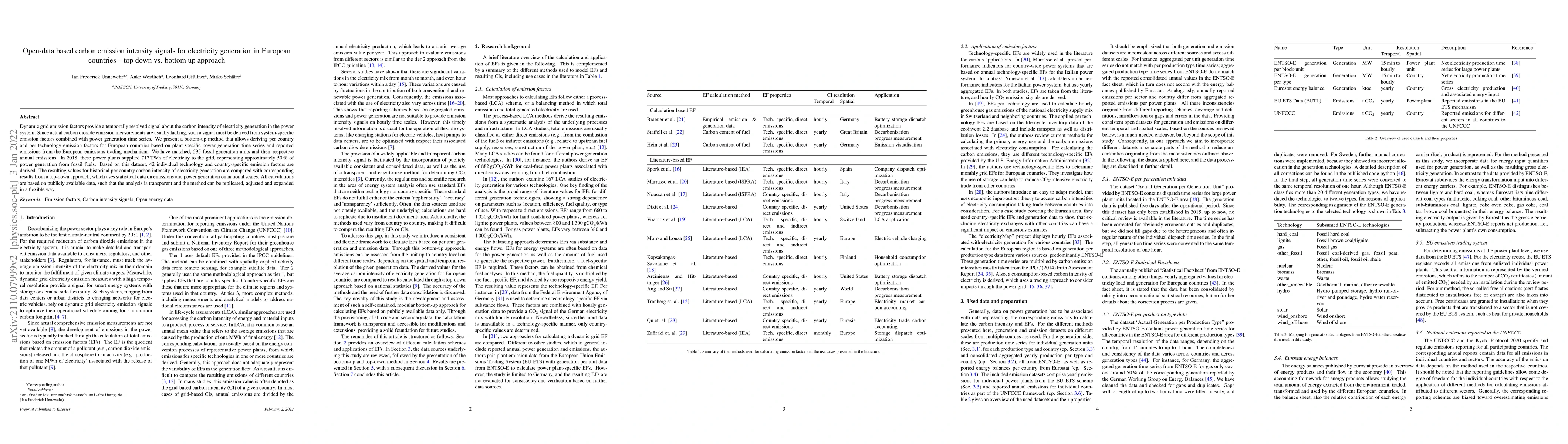 This paper presents a bottom-up method for deriving per country and technology emission factors for European electricity generation based on plant-specific data, and compares these results with top-down estimates using national-scale statistical data. The analysis uses publicly available data to ensure transparency and flexibility for replication.