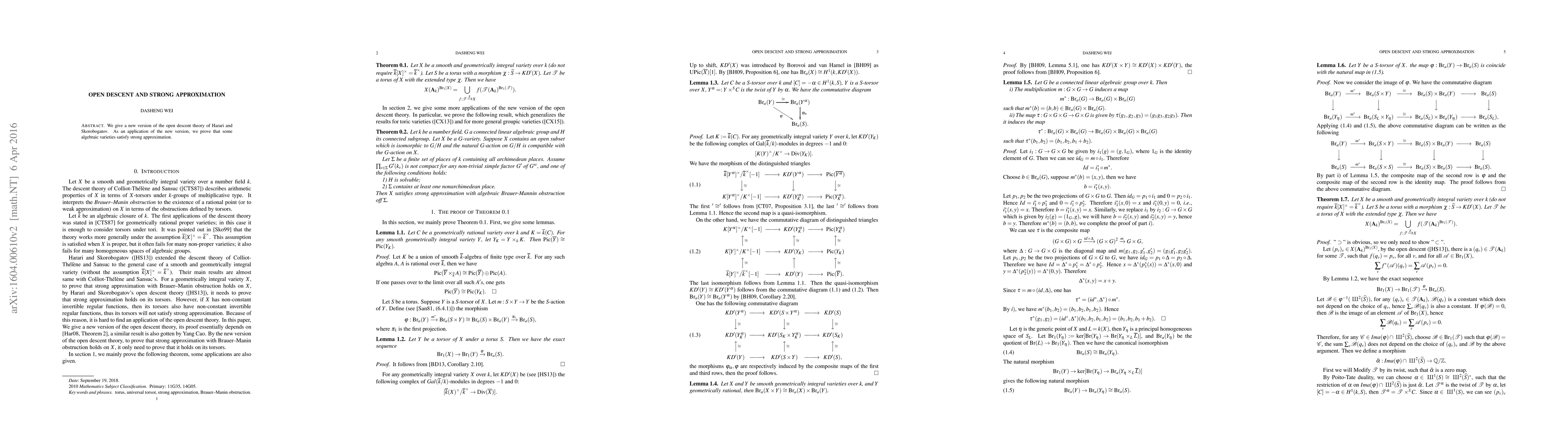 Summary: This paper presents an updated version of open descent theory, applying it to demonstrate that certain algebraic varieties meet the criteria for strong approximation.