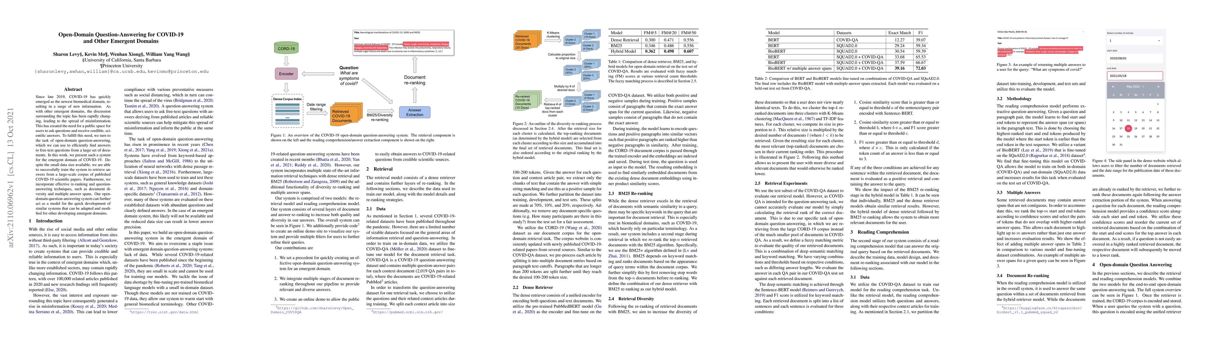 This research develops an open-domain question-answering system tailored for the emergent domain of COVID-19, effectively retrieving answers from scientific papers despite limited data. The system employs advanced re-ranking and question-answering techniques, providing a model for similar systems adaptable to other rapidly evolving domains.