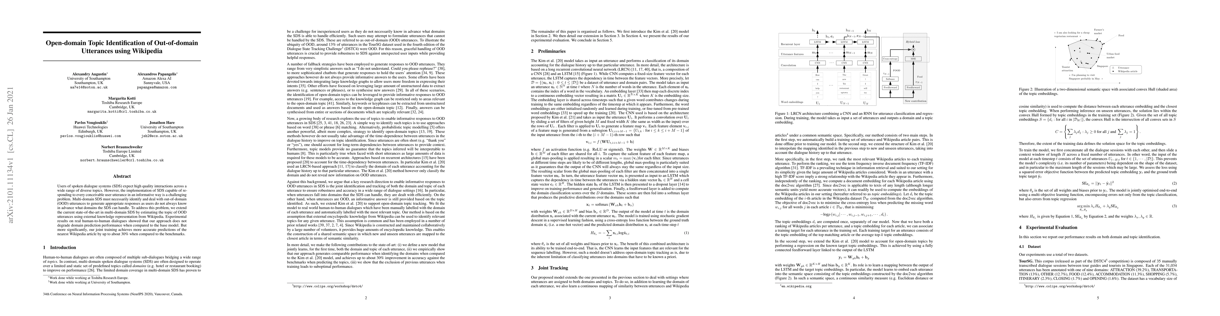 Users of spoken dialogue systems (SDS) expect high quality interactions across a wide range of diverse topics. However, the implementation of SDS capable of responding to every conceivable user utterance in an informative way is a challenging problem. Multi-domain SDS must necessarily identify and deal with out-of-domain (OOD) utterances to generate appropriate responses as users do not always know in advance what domains the SDS can handle. To address this problem, we extend the current state-of-the-art in multi-domain SDS by estimating the topic of OOD utterances using external knowledge representation from Wikipedia. Experimental results on real human-to-human dialogues showed that our approach does not degrade domain prediction performance when compared to the base model. But more significantly, our joint training achieves more accurate predictions of the nearest Wikipedia article by up to about 30% when compared to the benchmarks.