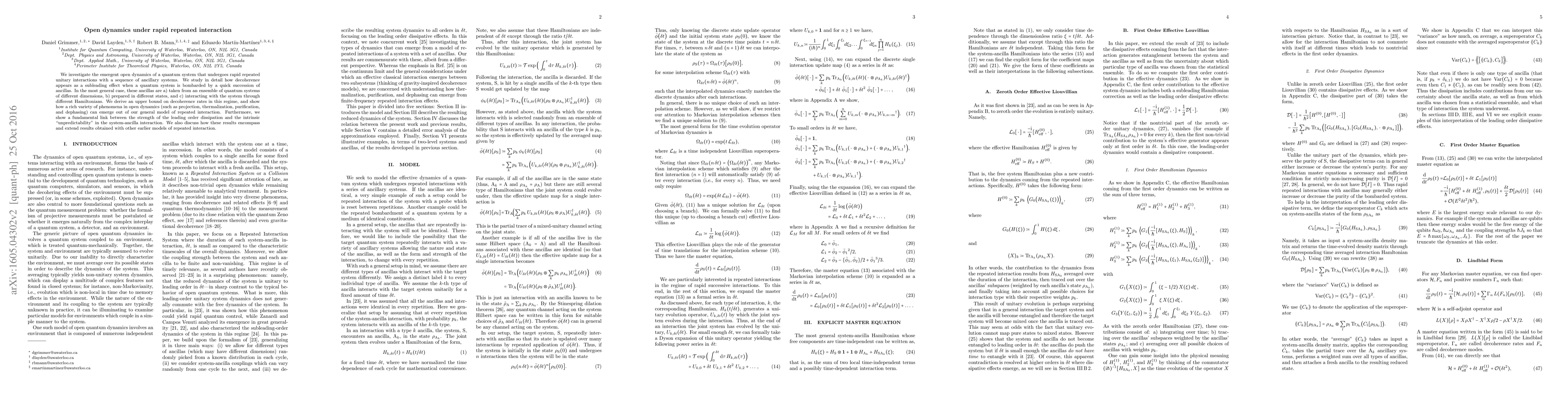 This paper explores the emergent dynamics of a quantum system rapidly interacting with a sequence of diverse ancillas, revealing decoherence as a secondary effect. It establishes an upper bound on decoherence rates and demonstrates how various phenomena in open dynamics arise from this interaction model, linking leading order dissipation to the unpredictability of the system-ancilla interaction.