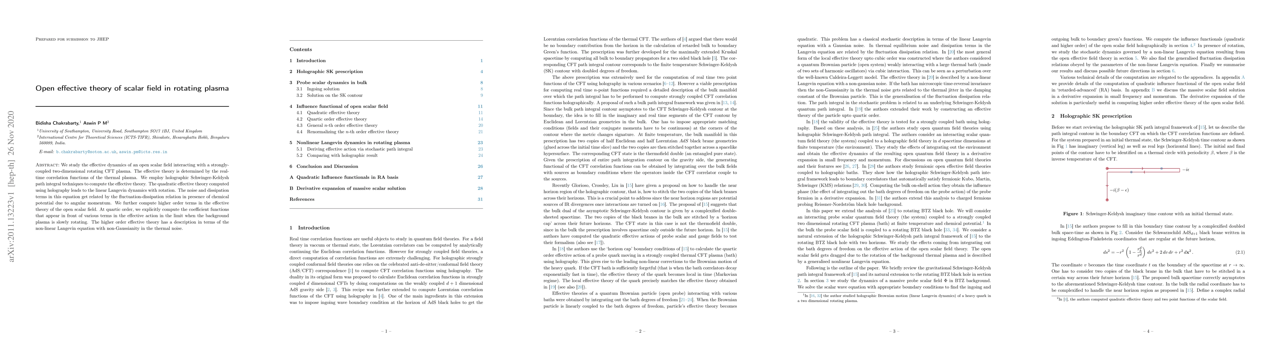 This paper investigates the effective dynamics of a scalar field in a rotating, strongly-coupled two-dimensional plasma using holographic Schwinger-Keldysh techniques. The study reveals a linear Langevin dynamics with rotation and fluctuation-dissipation relation, and computes higher order terms in the effective theory, showing non-Gaussianity in the thermal noise.