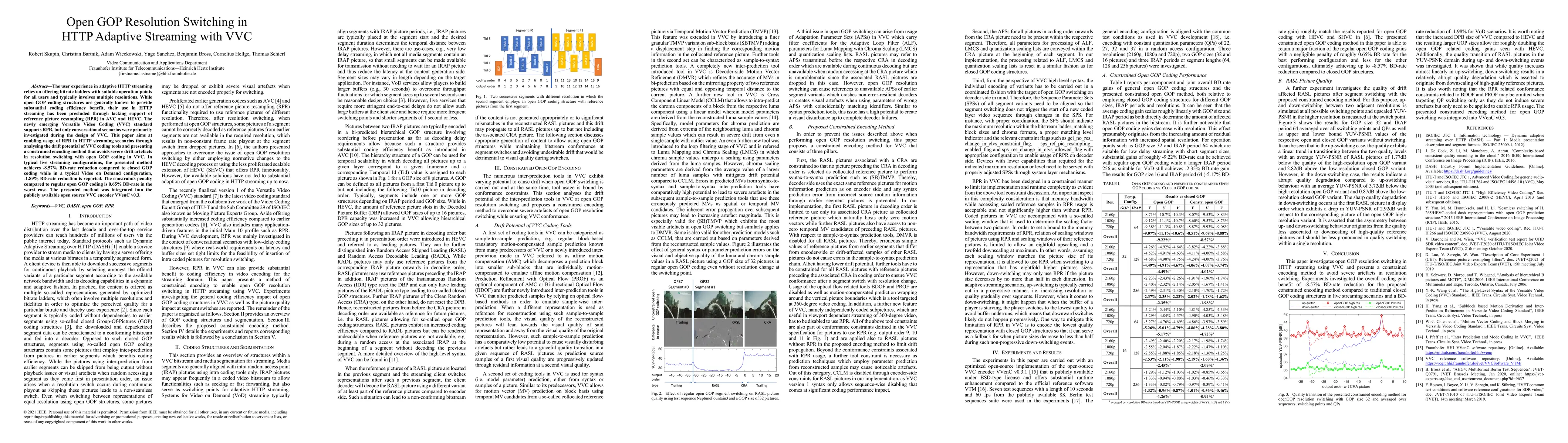 The user experience in adaptive HTTP streaming relies on offering bitrate ladders with suitable operation points for all users and typically involves multiple resolutions. While open GOP coding structures are generally known to provide substantial coding efficiency benefit, their use in HTTP streaming has been precluded through lacking support of reference picture resampling (RPR) in AVC and HEVC. The newly emerging Versatile Video Coding (VVC) standard supports RPR, but only conversational scenarios were primarily investigated during the design of VVC. This paper aims at enabling usage of RPR in HTTP streaming scenarios through analysing the drift potential of VVC coding tools and presenting a constrained encoding method that avoids severe drift artefacts in resolution switching with open GOP coding in VVC. In typical live streaming configurations, the presented method achieves -8.57% BD-rate reduction compared to closed GOP coding while in a typical Video on Demand configuration, -1.89% BD-rate reduction is reported. The constraints penalty compared to regular open GOP coding is 0.65% BD-rate in the worst case. The presented method was integrated into the publicly available open source VVC encoder VVenC v0.3.