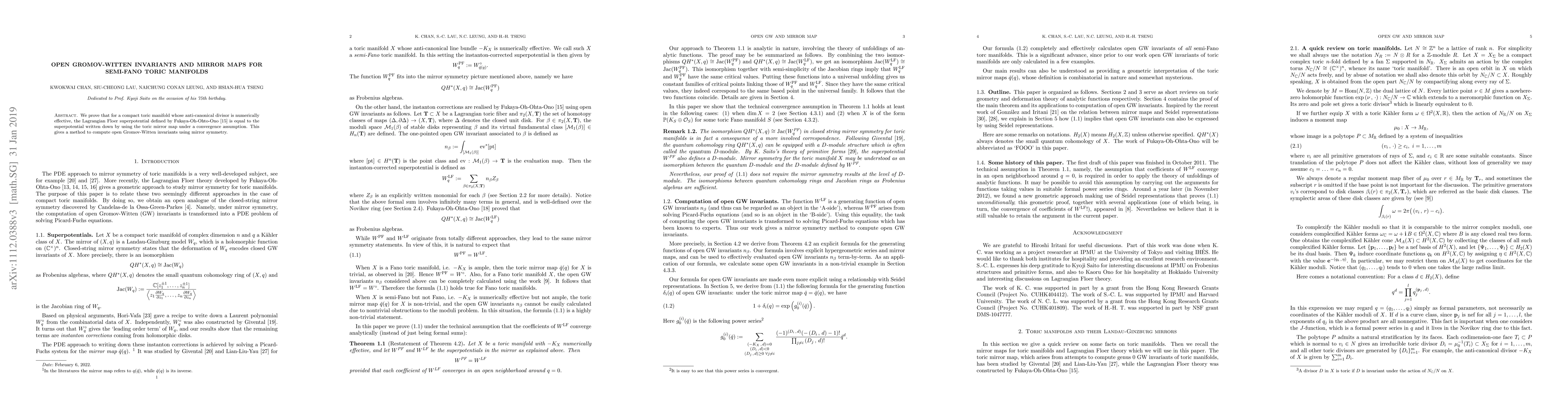 Summary: The paper establishes equality between the Lagrangian Floer superpotential and the toric mirror map superpotential for semi-Fano toric manifolds, providing a method to compute open Gromov-Witten invariants via mirror symmetry under certain convergence conditions.