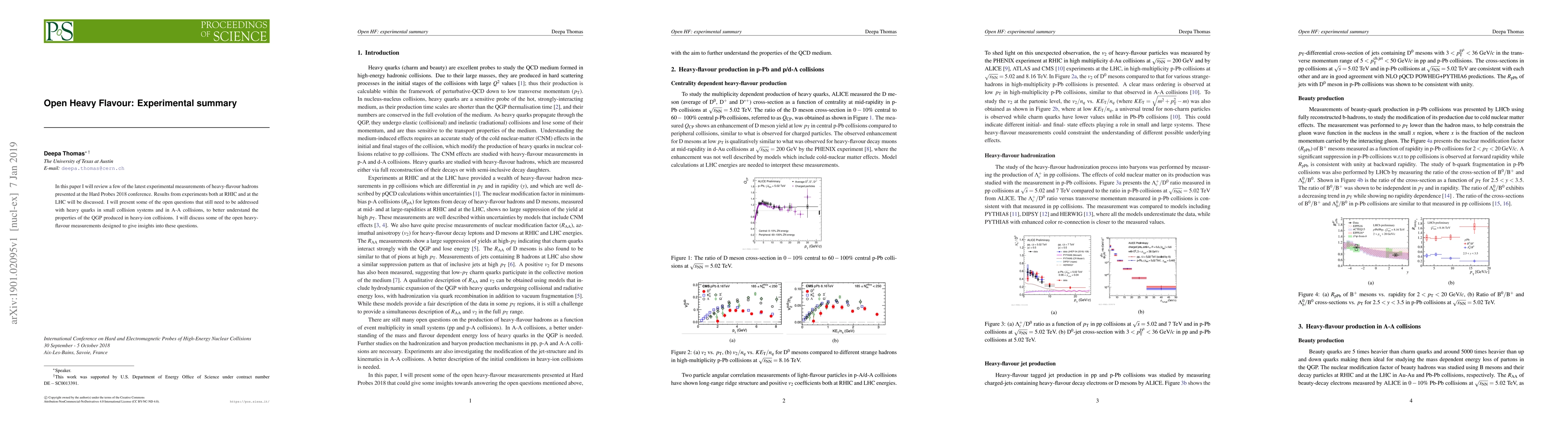 In this paper I will review a few of the latest experimental measurements of heavy-flavour hadrons presented at the Hard Probes 2018 conference. Results from experiments both at RHIC and at the LHC will be discussed. I will present some of the open questions that still need to be addressed with heavy quarks in small collision systems and in A-A collisions, to better understand the properties of the QGP produced in heavy-ion collisions. I will discuss some of the open heavy-flavour measurements designed to give insights into these questions.