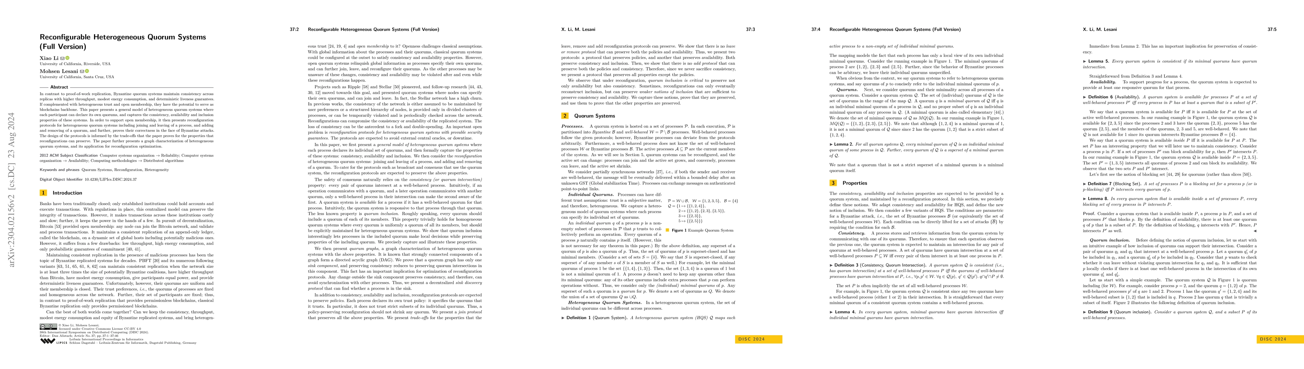This paper introduces a general model for open heterogeneous quorum systems, emphasizing their potential for high throughput and energy efficiency in global financial infrastructure. It proposes reconfiguration protocols to manage membership changes and analyzes trade-offs in maintaining system properties, supported by correctness proofs.
