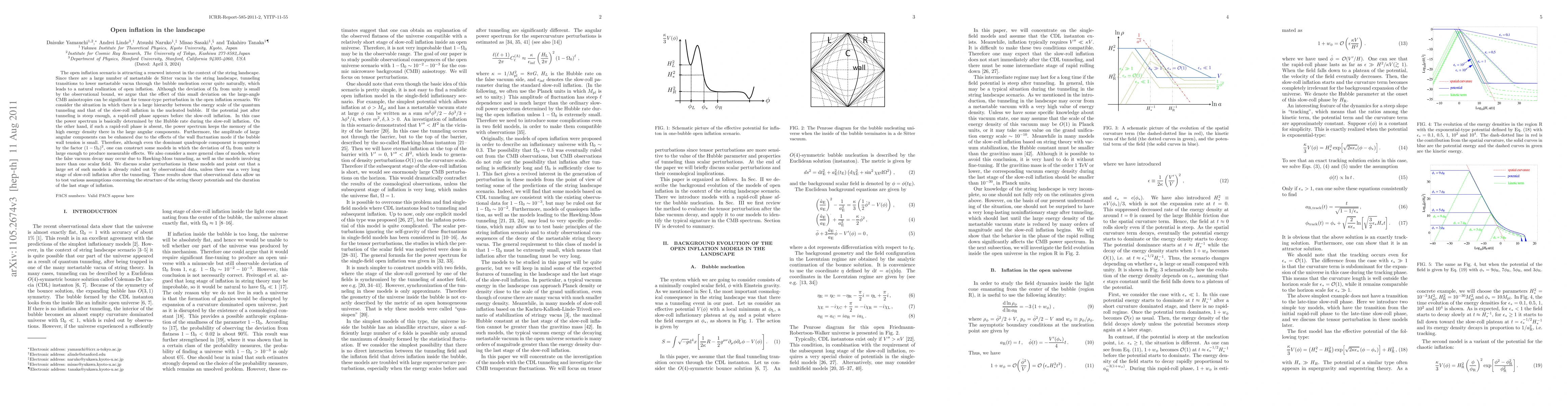 This paper explores open inflation within the string landscape, focusing on tunneling transitions to lower metastable vacua. It argues that small deviations in Omega_0 can significantly affect large angle CMB anisotropies, especially for tensor-type perturbations. The study discusses scenarios where rapid-roll phases influence the power spectrum, and concludes that many models are ruled out by observational data unless prolonged slow-roll inflation follows tunneling.