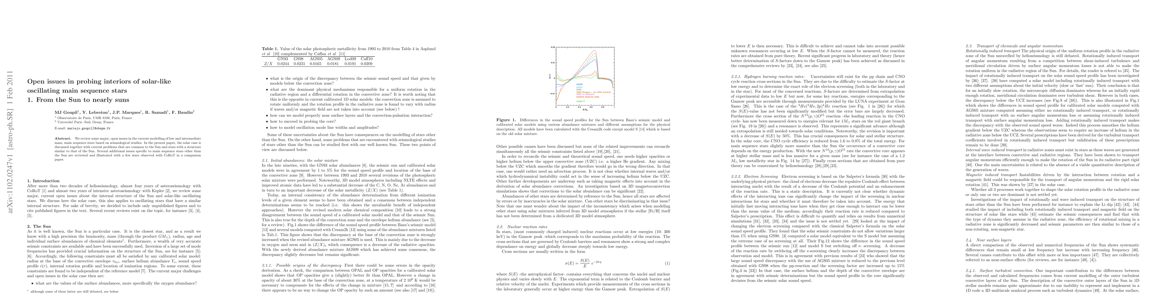 We review some major, open issues in the current modelling of low and intermediate mass, main sequence stars based on seismological studies. In the present paper, the solar case is discussed together with current problems that are common to the Sun and stars with a structure similar to that of the Sun. Several additional issues specific to main sequence stars other than the Sun are reviewed and illustrated with a few stars observed with CoRoT in a companion paper.