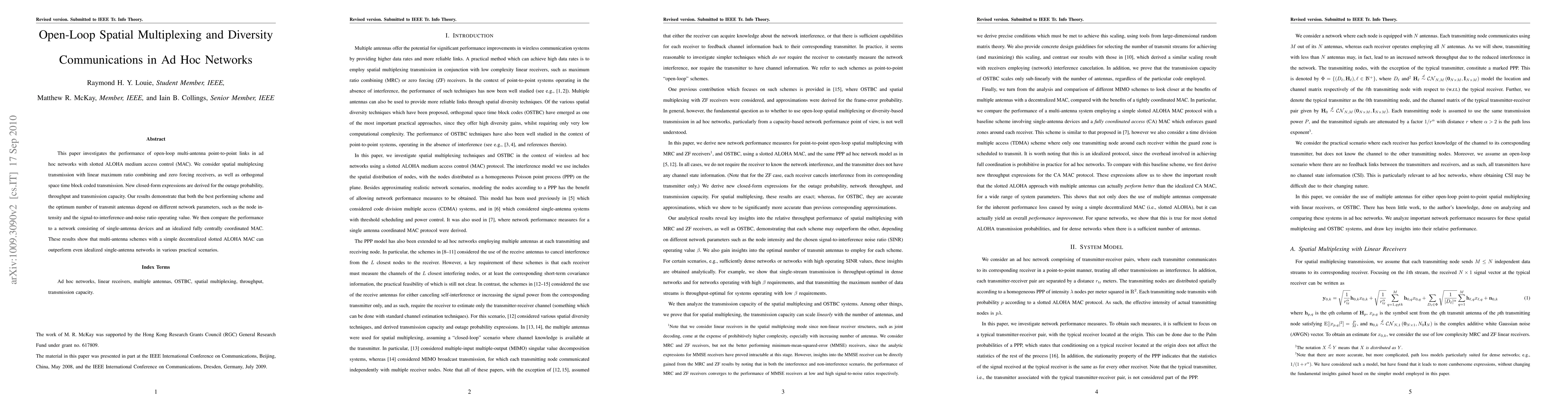 This paper evaluates open-loop multi-antenna links in ad hoc networks under slotted ALOHA, deriving new closed-form expressions for outage probability, throughput, and capacity. It finds that multi-antenna schemes can outperform single-antenna networks, even in idealized centralized conditions, depending on network parameters like node density and signal-to-interference-and-noise ratio.