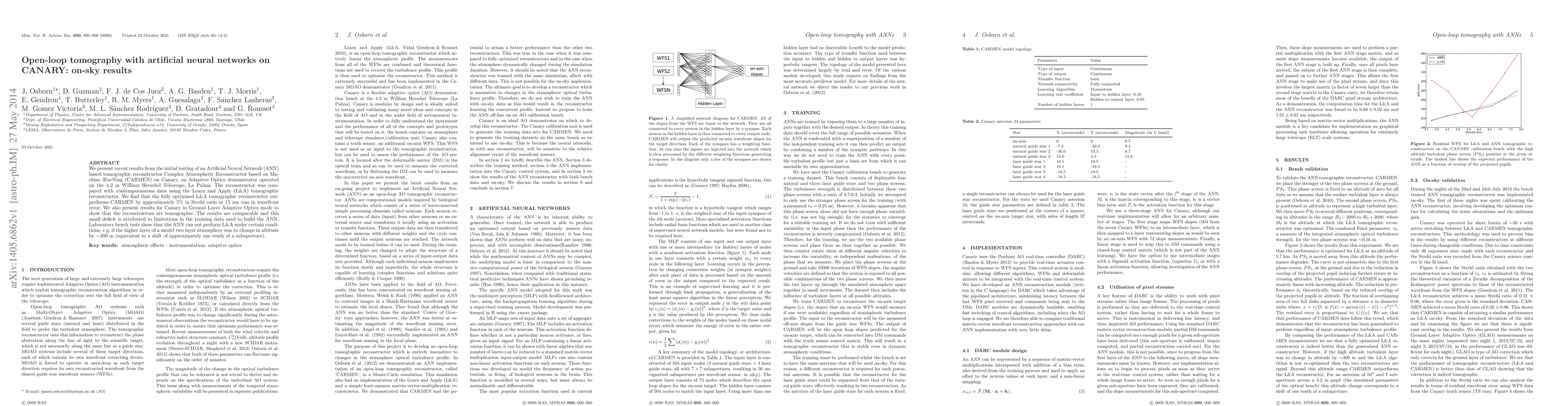 We present recent results from the initial testing of an Artificial Neural Network (ANN) based tomographic reconstructor Complex Atmospheric Reconstructor based on Machine lEarNing (CARMEN) on Canary, an Adaptive Optics demonstrator operated on the 4.2m William Herschel Telescope, La Palma. The reconstructor was compared with contemporaneous data using the Learn and Apply (L&A) tomographic reconstructor. We find that the fully optimised L&A tomographic reconstructor outperforms CARMEN by approximately 5% in Strehl ratio or 15nm rms in wavefront error. We also present results for Canary in Ground Layer Adaptive Optics mode to show that the reconstructors are tomographic. The results are comparable and this small deficit is attributed to limitations in the training data used to build the ANN. Laboratory bench tests show that the ANN can out perform L&A under certain conditions, e.g. if the higher layer of a model two layer atmosphere was to change in altitude by ~300~m (equivalent to a shift of approximately one tenth of a subaperture).