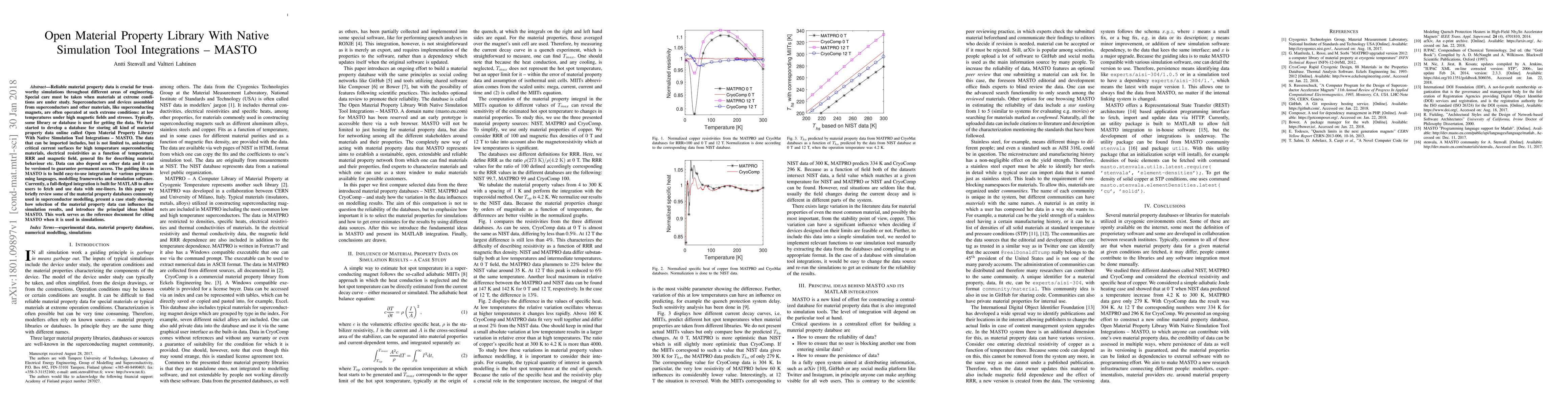 This paper introduces the Open Material Property Library With Native Simulation Tool Integrations (MASTO), a new online database for storing diverse material property data, especially for superconductors. It aims to facilitate easy integration with various simulation tools, exemplified by a full-fledged integration with MATLAB, to enhance the reliability of simulations under extreme conditions.