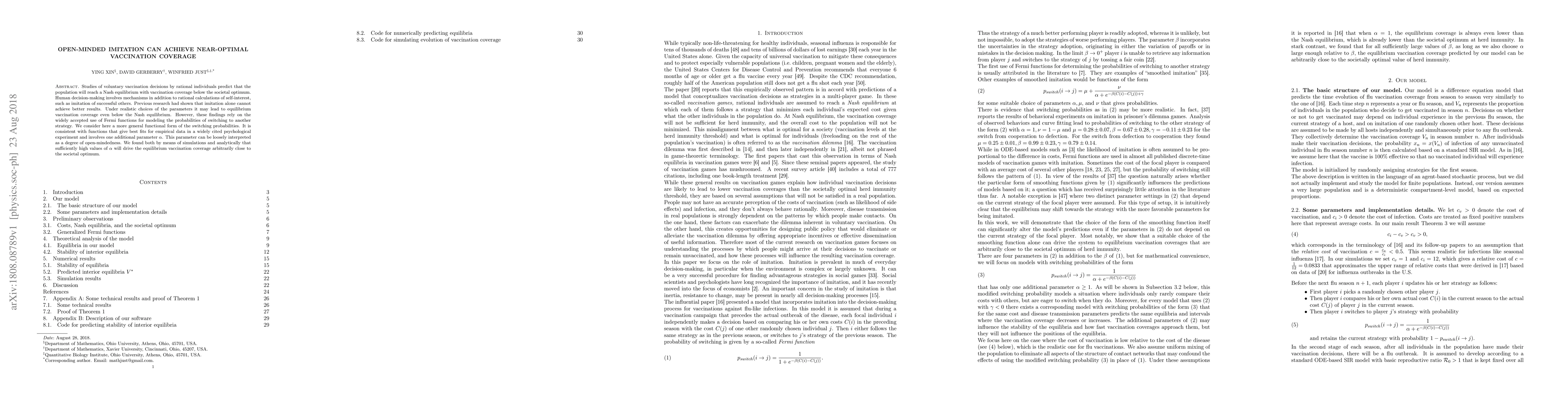 This paper explores how open-minded imitation, modeled by a general functional form with an additional parameter $\alpha$, can achieve near-optimal vaccination coverage, surpassing the limitations of previous models based on Fermi functions. High values of $\alpha$ drive equilibrium vaccination coverage close to the societal optimum, demonstrating the potential of social influence mechanisms in public health strategies.