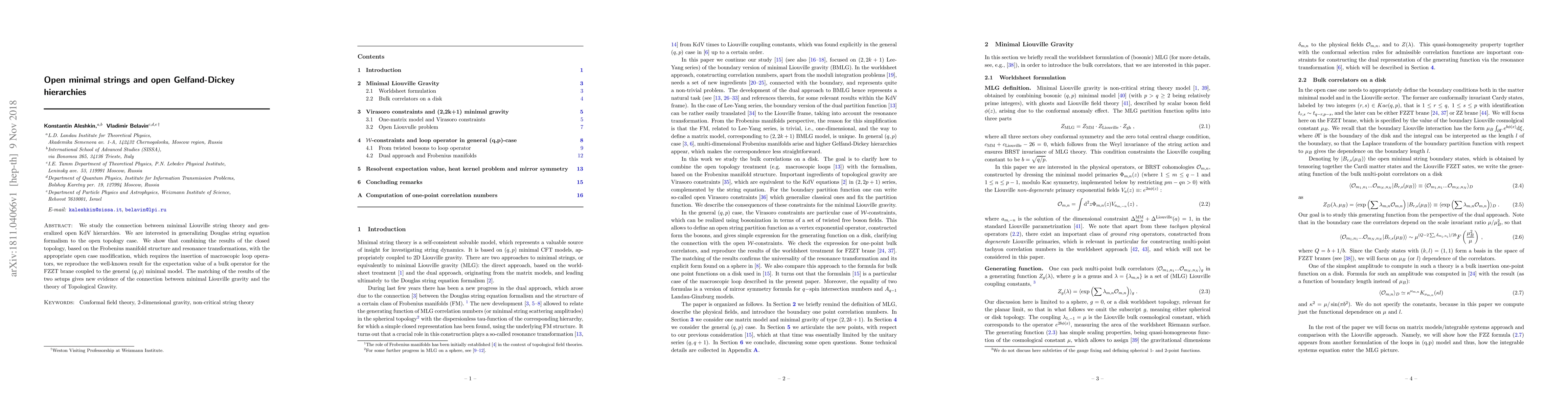 The paper connects minimal Liouville string theory to generalized open KdV hierarchies, showing that combining closed topology results with modified open case modifications reproduces the expectation value of a bulk operator for the FZZT brane, providing new evidence for the connection between minimal Liouville gravity and Topological Gravity.