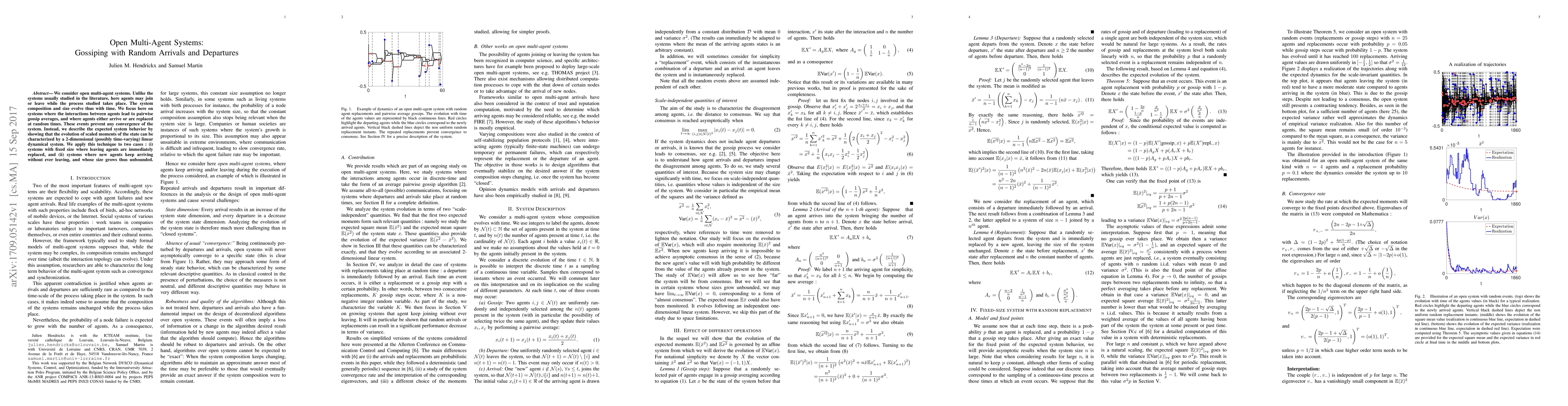 Researchers model open multi-agent systems where agents can join or leave randomly, showing that system behavior evolves into a 2D linear dynamical system with varying size and agent arrival rates.