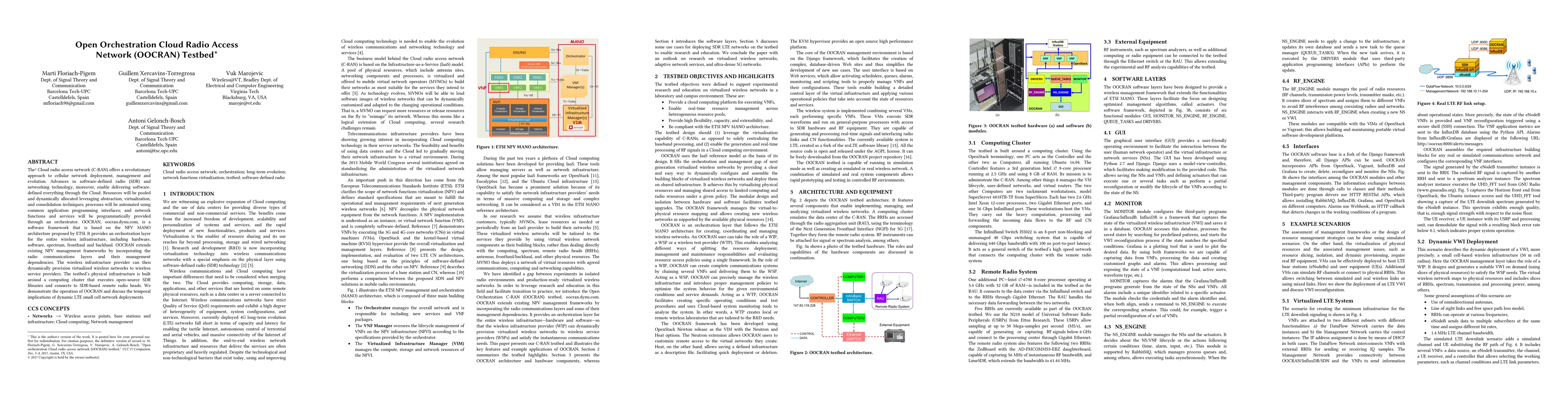 The OOCRAN testbed enables dynamic provisioning of virtualized wireless networks using software-defined radio and orchestration based on ETSI NFV MANO architecture. It showcases the deployment of LTE small cells, highlighting the temporal benefits of its flexible, resource-pooling approach.