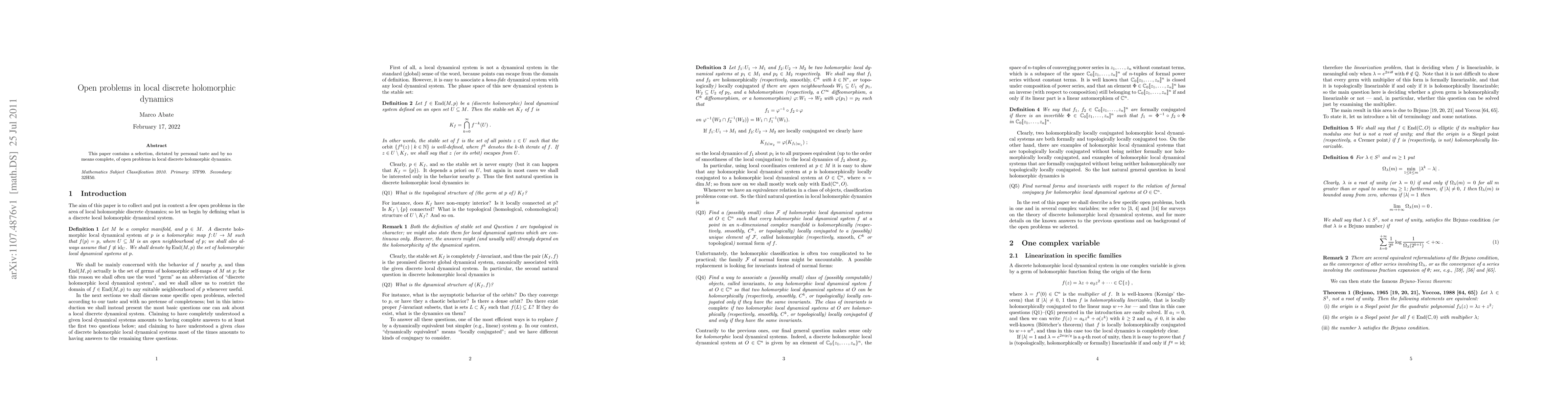 This paper contains a selection, dictated by personal taste and by no means complete, of open problems in local discrete holomorphic dynamics.
